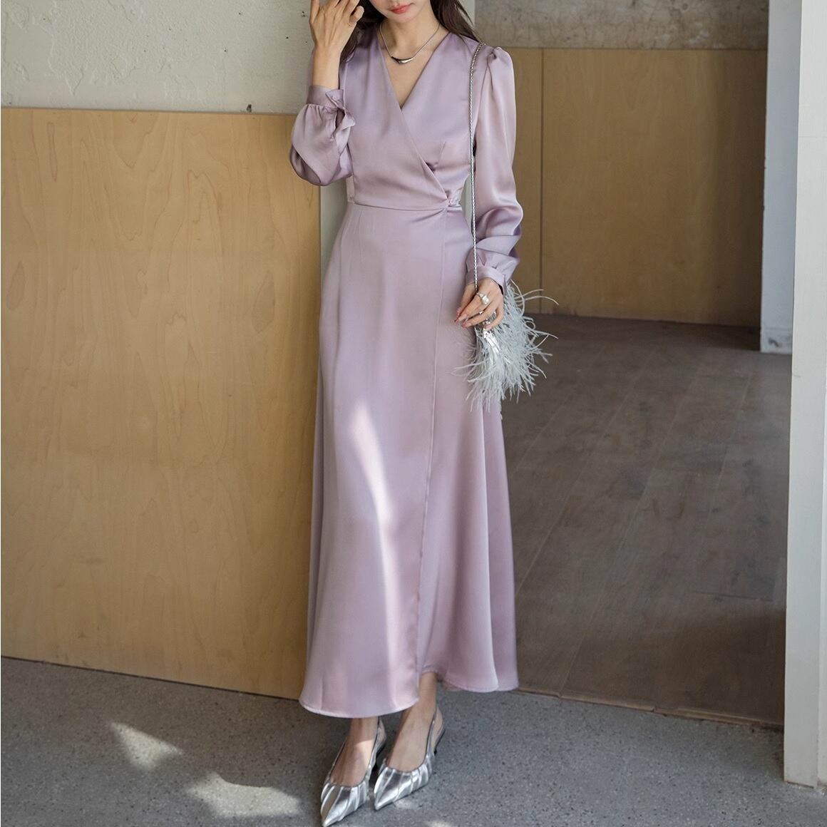エレガントなシルエットが魅力のelegant acetate wrap dress。 華やかな場面にもぴったりのデザインです。 ◇商品詳細 【サイズ】cm M 着丈:130cm /バスト:94cm/肩幅:37cm/袖丈61cm/ウエスト:76cm L 着丈:132cm /バスト:98cm/肩幅:38cm/袖丈:62cm/ウエスト:80cm XL 着丈:134cm /バスト:102cm/肩幅:39cm/袖丈:63cm/ウエスト:84cm ※1-4cmほどの誤差がある場合があります 【カラー】 ピンクパープル/ミルクベージュ/ブラック 【素材】 アセテート 70% ポリエステル30% 折りたたんで発送されるため、折ジワがある場合があります。ご了承のほどよろしくお願いいたします。 【お届けについて】 当ショップの商品は海外からの取り寄せ・発送となるため、ご入金から商品到着まで2週間~4週間のお届けになります。 ◼️注意事項 ・タイミングによっては 商品在庫切れにより 注文キャンセルとさせていただく恐れもございますので、予めご了承くださいませ。 ・こちらは輸入品となります。日本製とは検品基準が異なる為、 新品未使用品でもごくわずかな汚れや傷がある場合もございます。 ・商品の色味は、お手持ちのスマートフォンの画面によって実物と若干異なる場合がございます。 ・イメージ違いやサイズ交換等、お客さまご都合による交換、返品は対応出来かねます。 ———————————— ご購入前にこちらをお読みください →https://www.amor-alma.shop/about ———————————— 管理番号:d2320 ———————————— トップスはこちらにもまだまだあります→https://www.amor-alma.shop/categories/2952433 他の商品はこちら!→https://www.amor-alma.shop/ ———————————