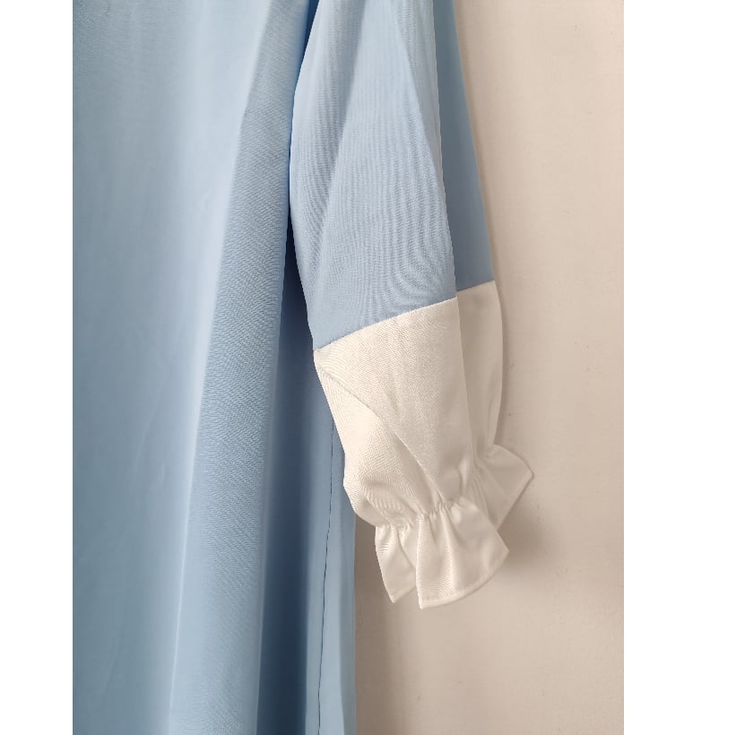 elegant blue long dress with white lace sleeves <d2332>