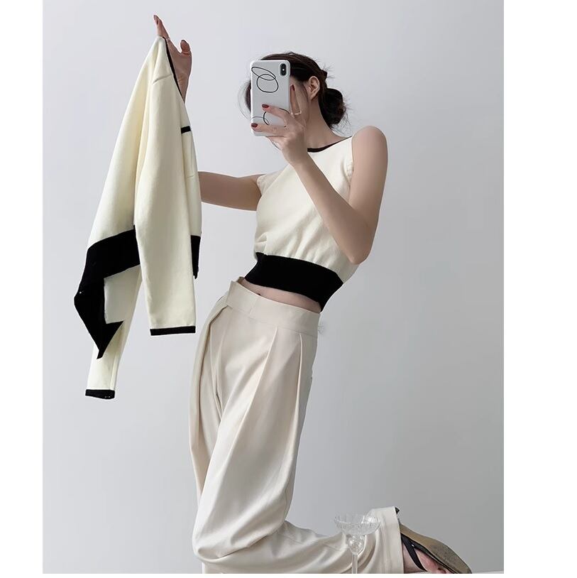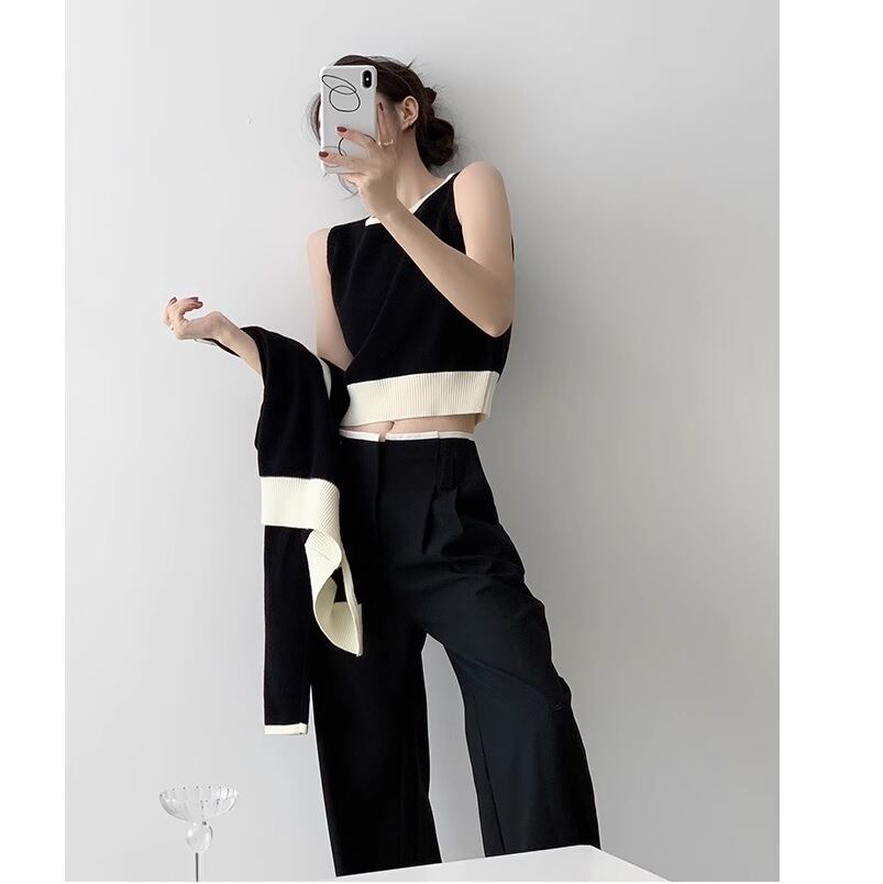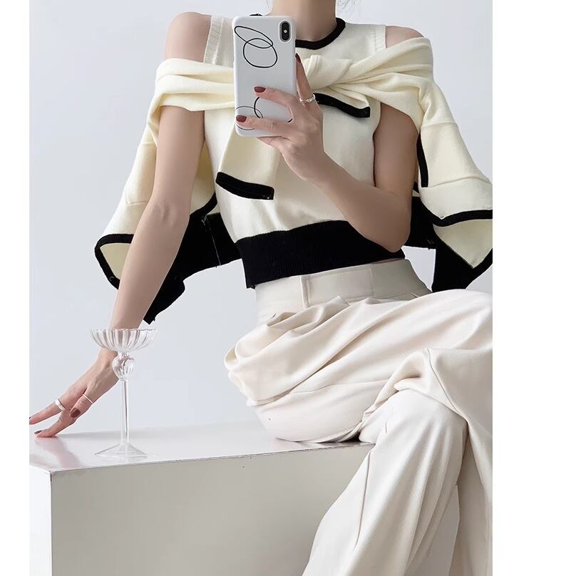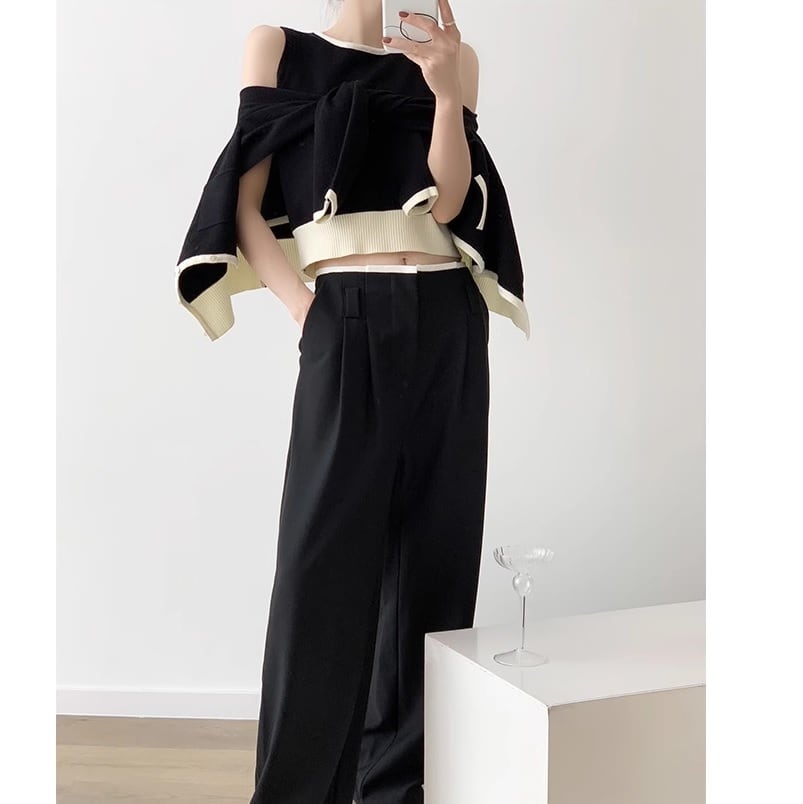 エレガントで上品なfrench bicolor top & cardigan set。