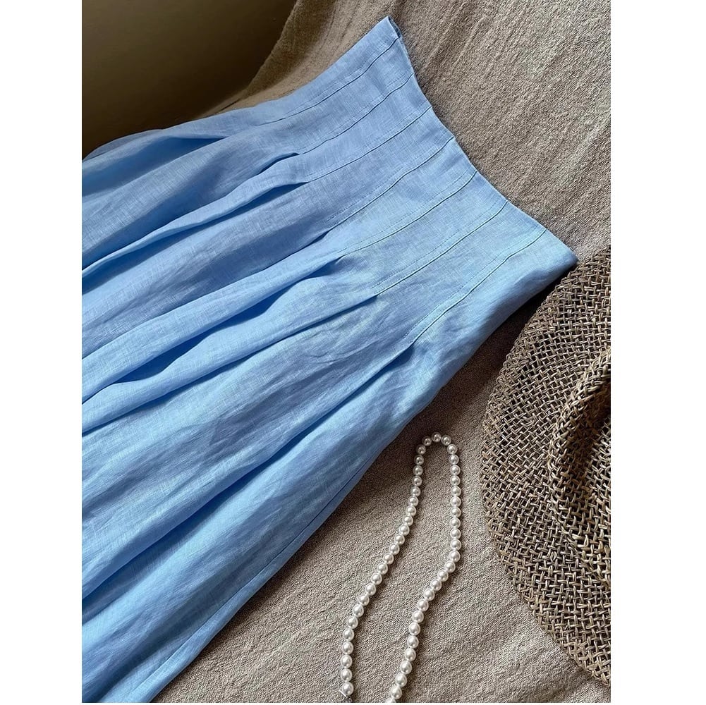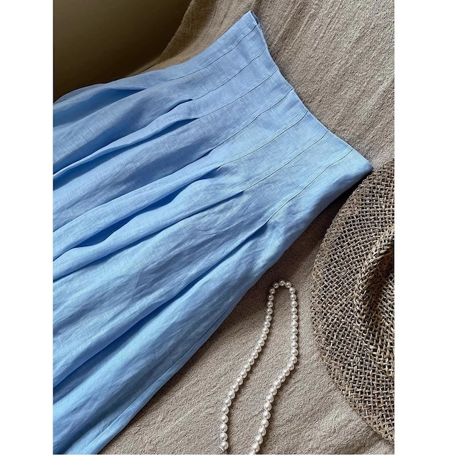 シンプルなhigh-waist flared linen skirt。