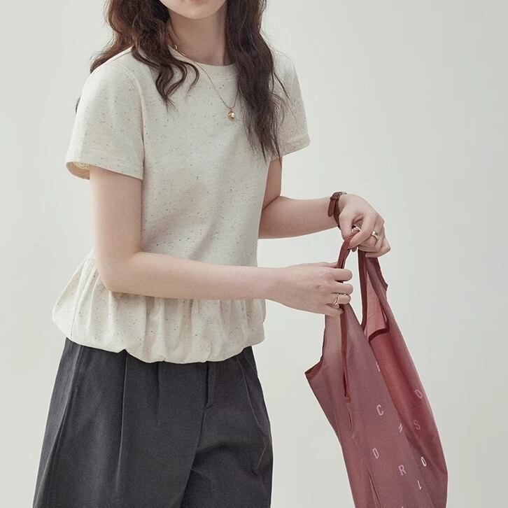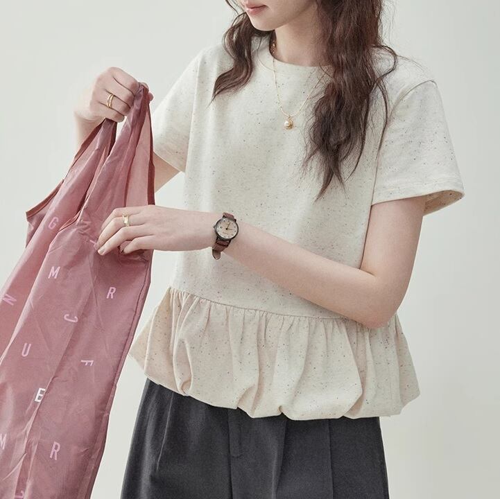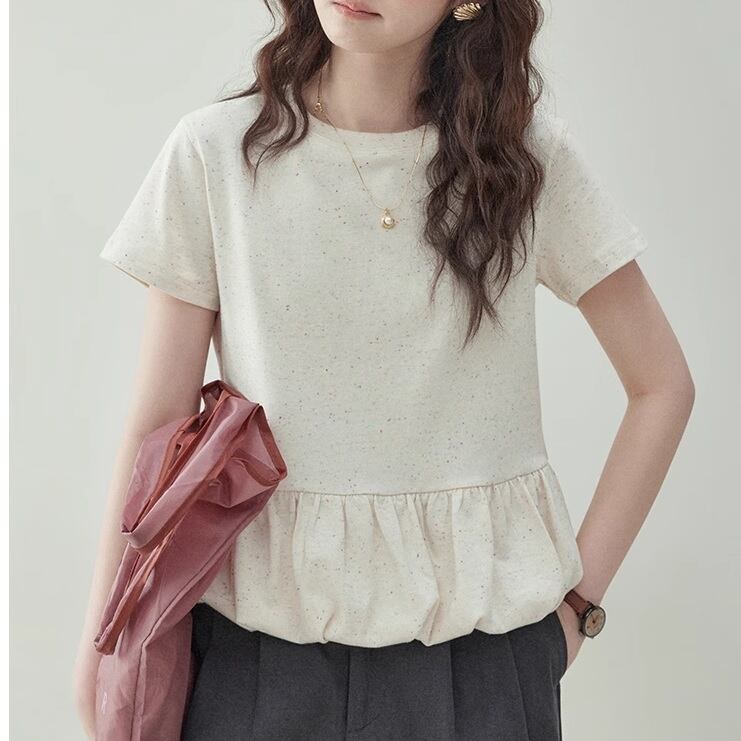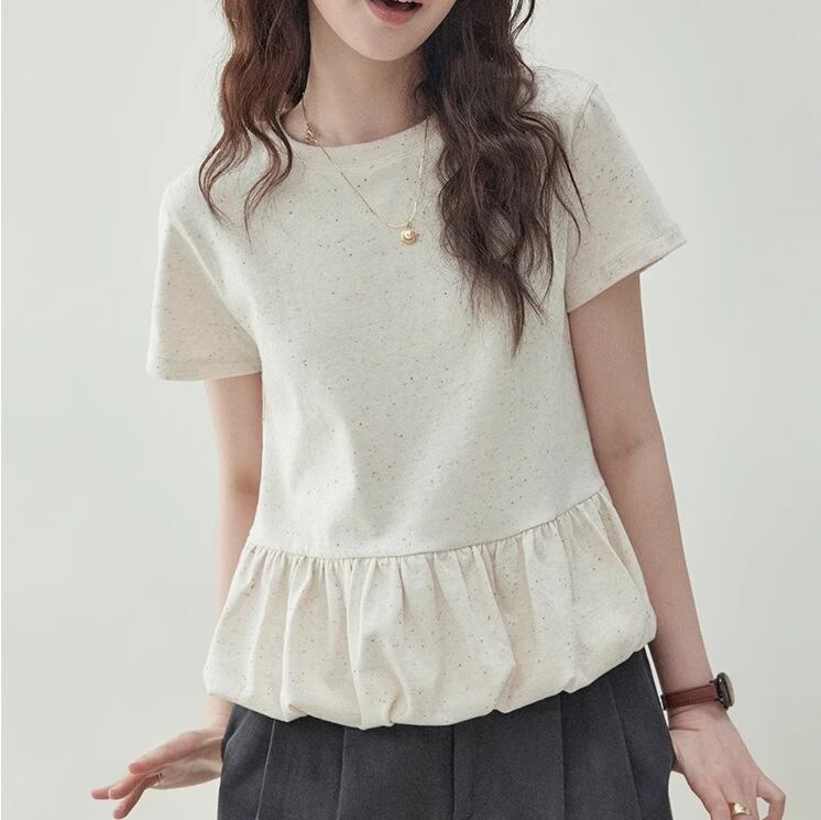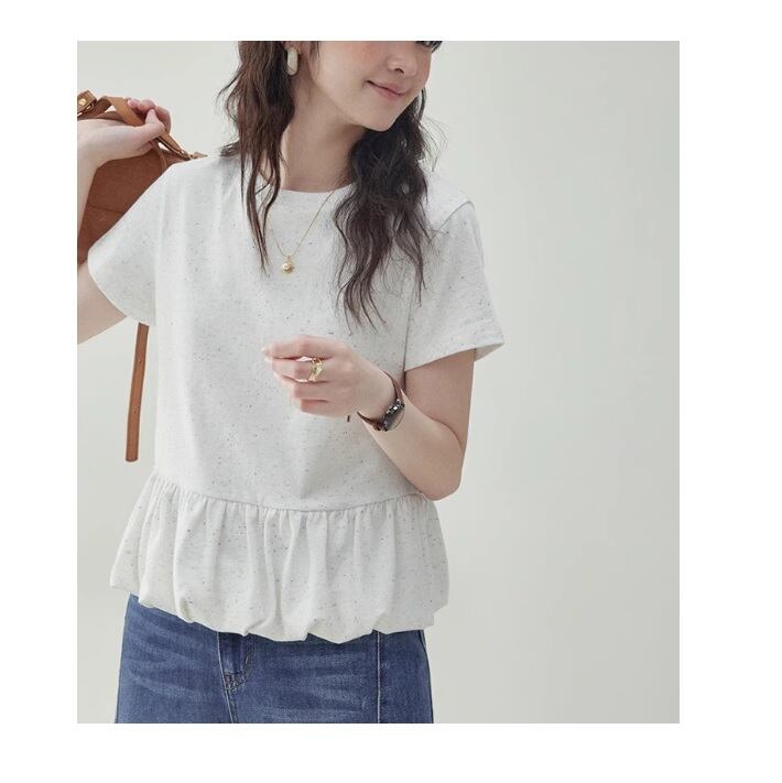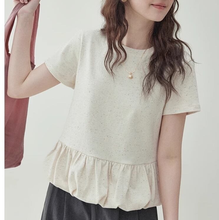 short-sleeve t-shirt with ruffled hem (2color)<t2385>
