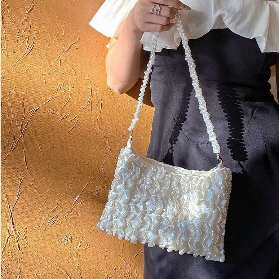 エレガントなhandmade pearl beaded tote dumpling bag。