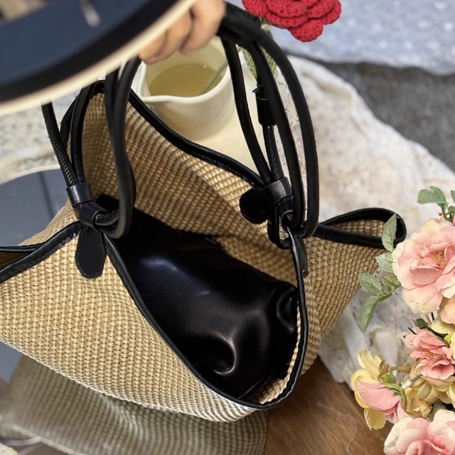 即納商品:noémie handwoven small bucket bag(2color)ベージュ<b2396>