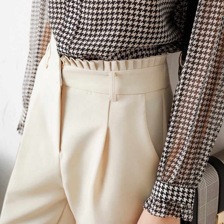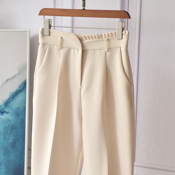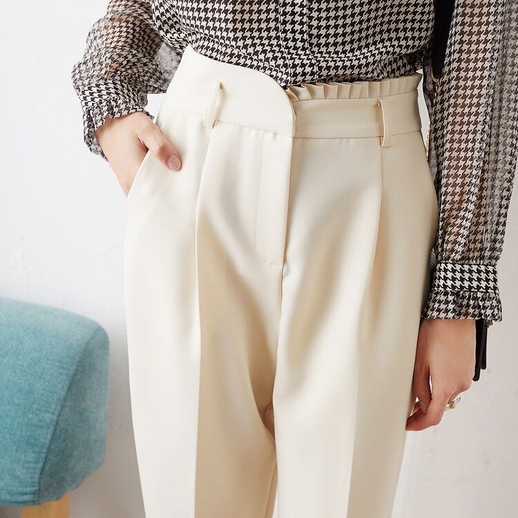 センタープレスですっきり上品に。夏も対応の薄めの生地です。