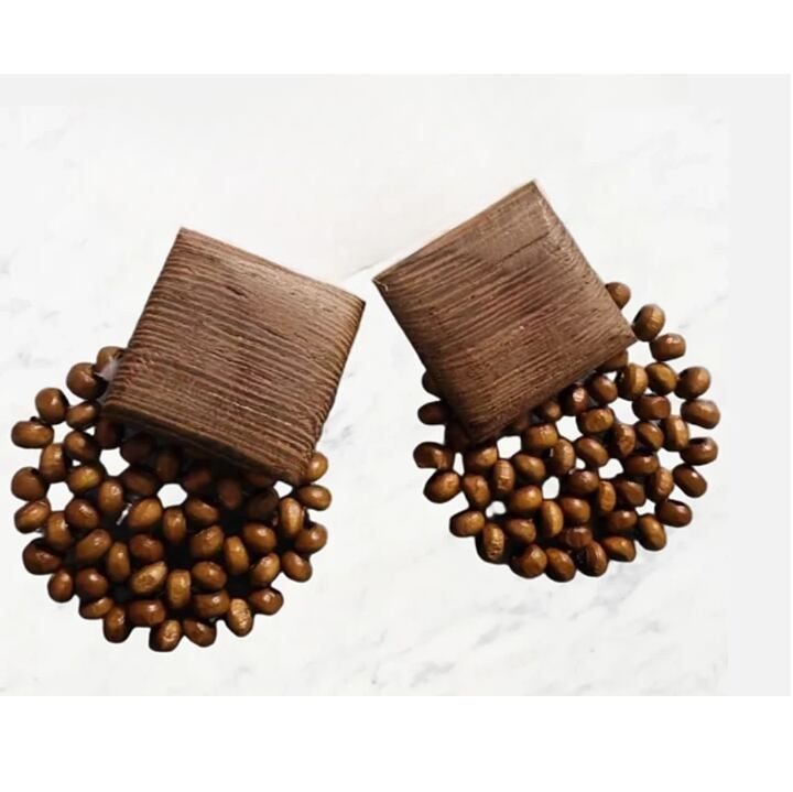 個性的で魅力的なrainforest tribe boho seed bead wooden statement pierce。