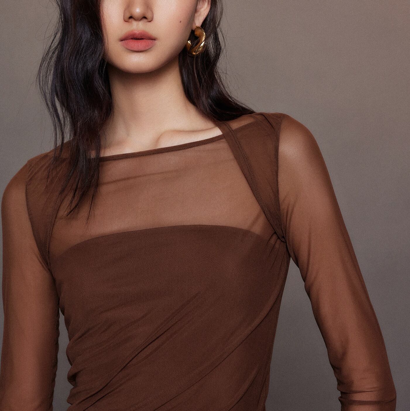 シアーメッシュ素材が軽やかでありながら上品な印象。