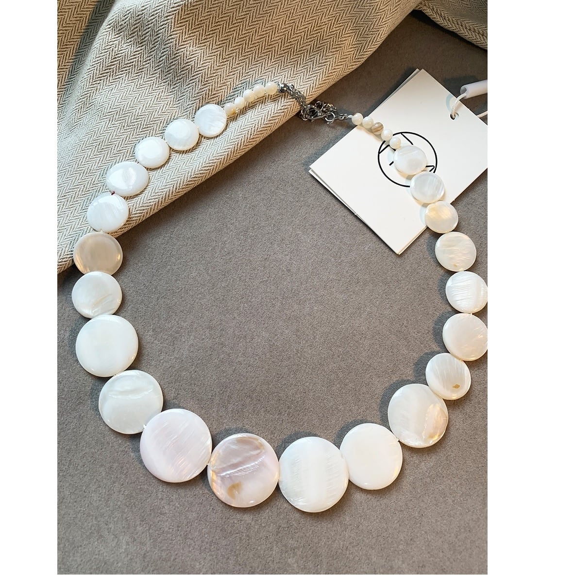 自然な美しさを引き立てるnatural mother-of-pearl disc choker。