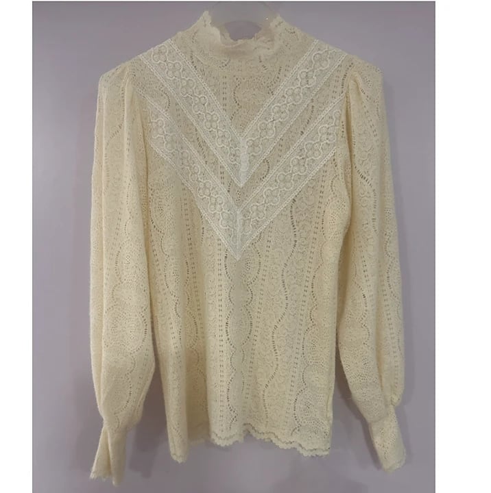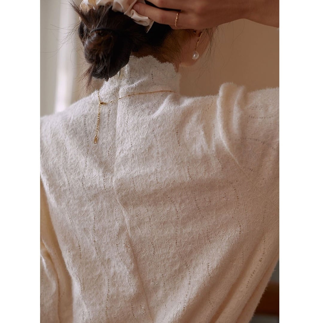 華やかでエレガントなfrench vintage lace blouse with stand collar 。