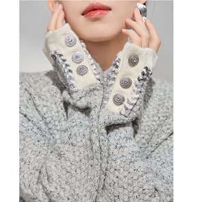 クラシックな魅力と洗練された快適さが融合した、tweed-style knit cardigan with silver buttons。