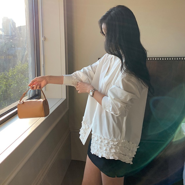 重なるラッフルが、優雅な動きとともにロマンティックな物語を紡ぎ出します。
