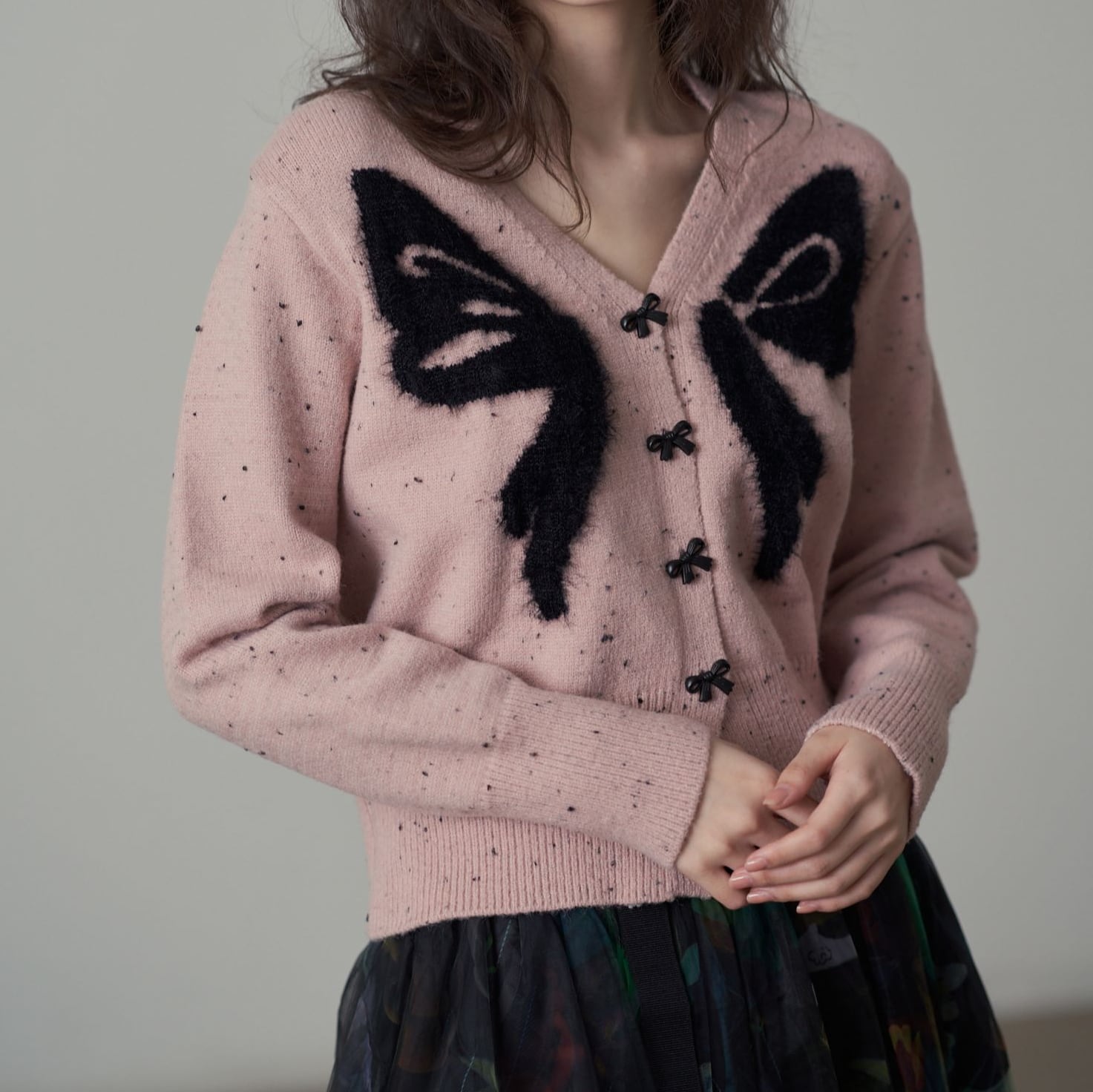 french vintage colorblock butterfly fitted princess knit cardigan(2color)<t2959>