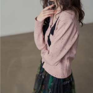 ヴィンテージライクな愛らしいニットカーディガン。ボタンまでこだわった可愛いデザイン。