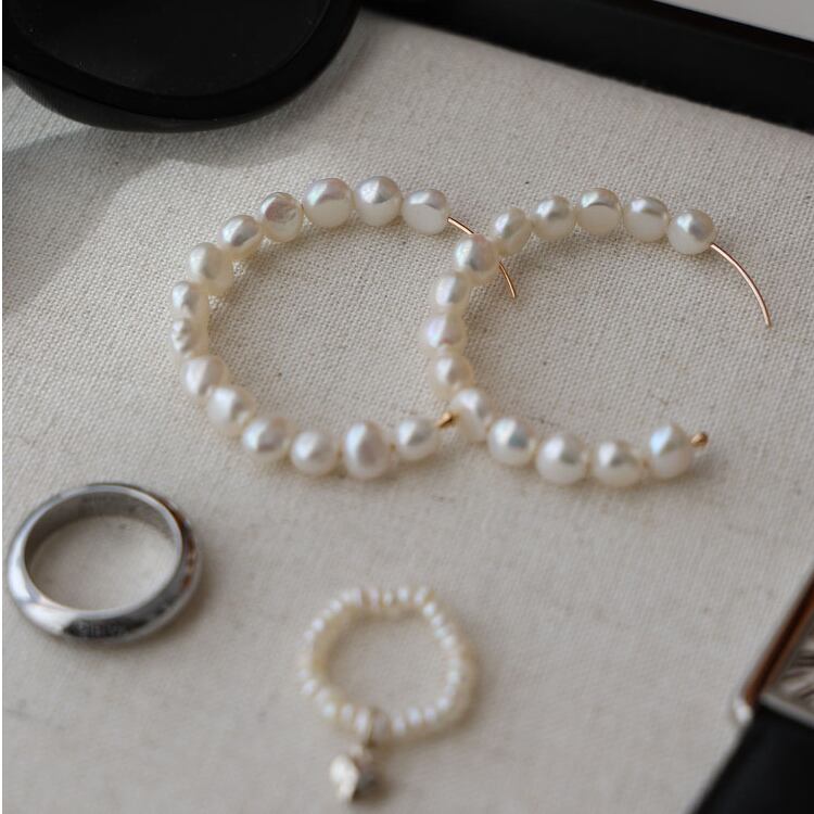 バロックパールの、自然な曲線と深みのある光沢がC型フープピアス。