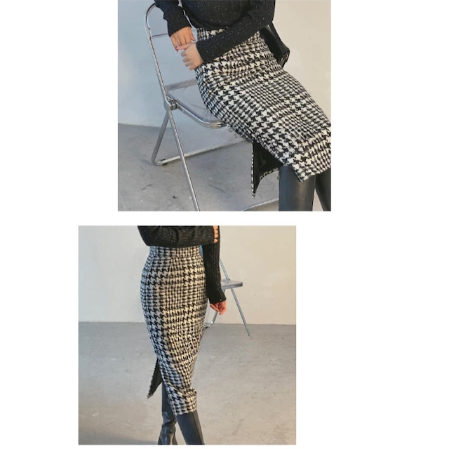 custom-tailored houndstooth high-waist straight skirt with slit(2color)<sk3006>