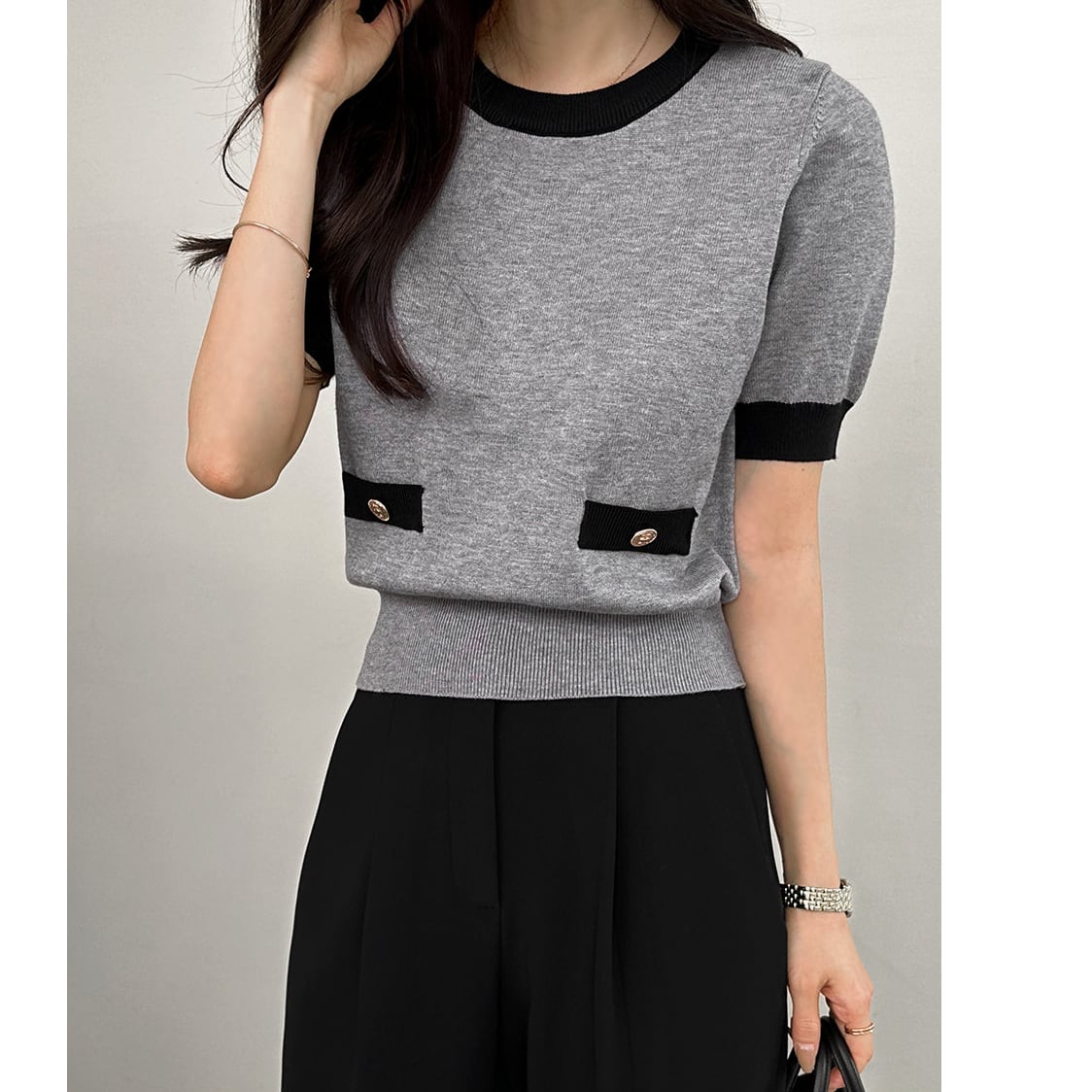 ショートスリーブトップスは単体で着てもすっきりと決まり、カーディガンを羽織れば一瞬で奥行きのあるコーディネートに。