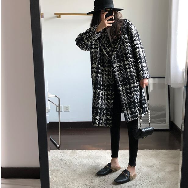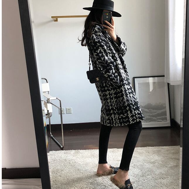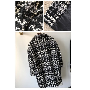 black and white houndstooth tweed coat<c3024>