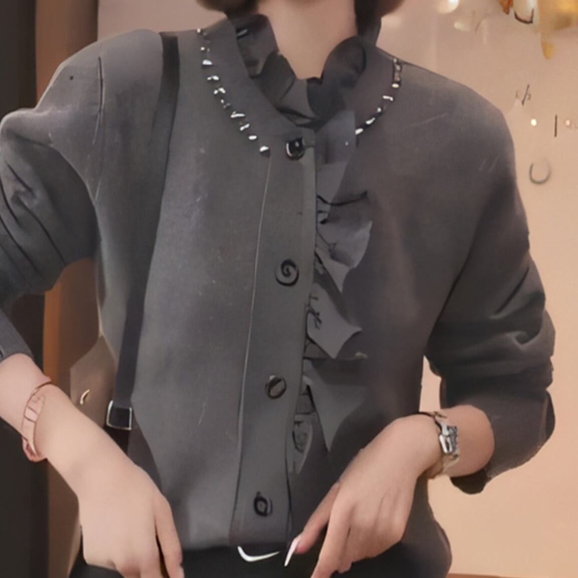 ruffle collar rhinestone knit cardigan<t3029>