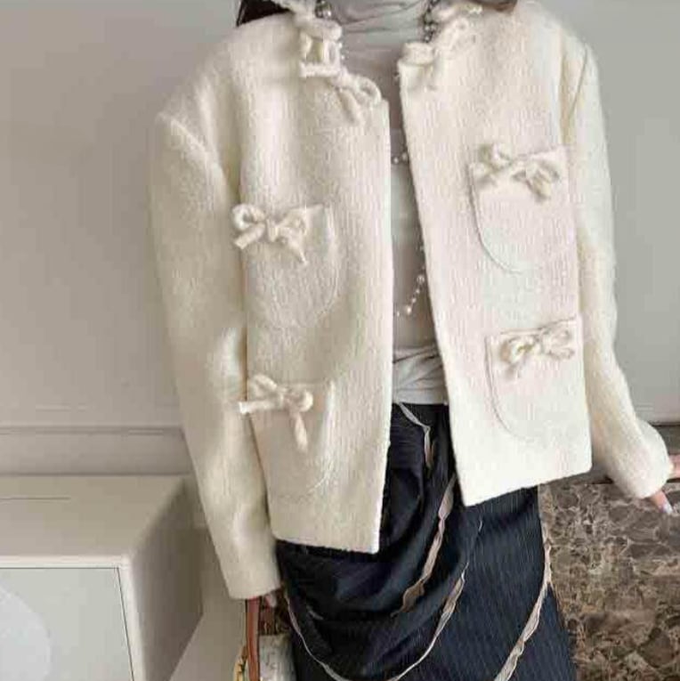 bow detail wool cropped jacket(2color)<c3035>