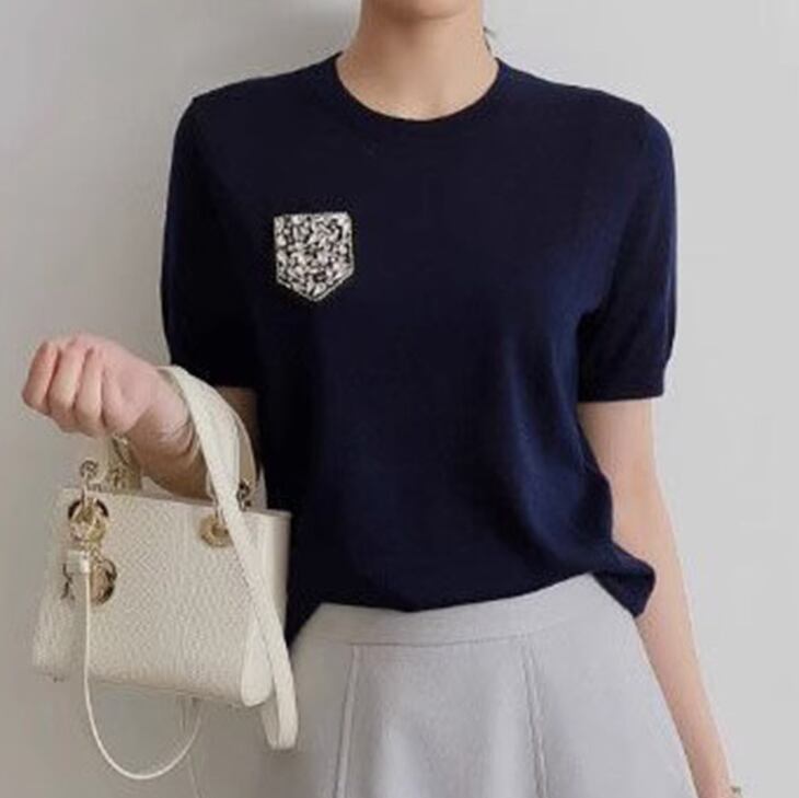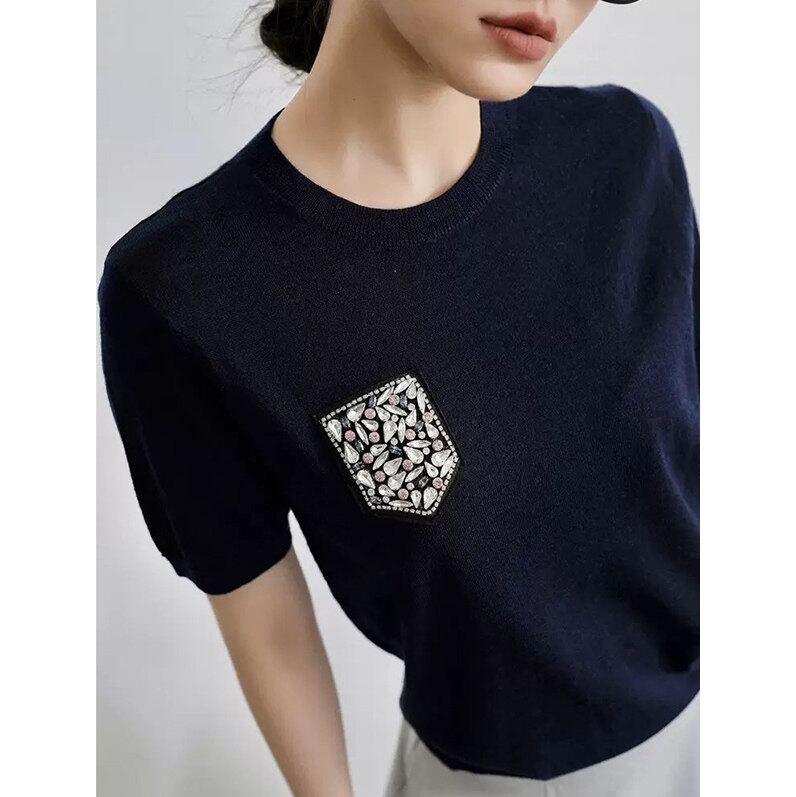 繊細に輝くラインストーンをあしらった、ニットトップ。