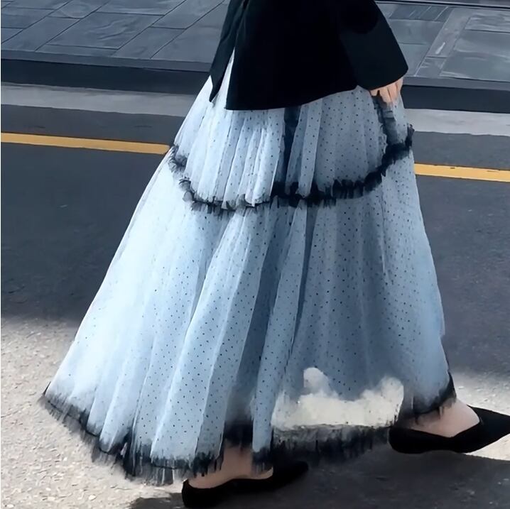 polka dot tulle midi skirt<sk3052>