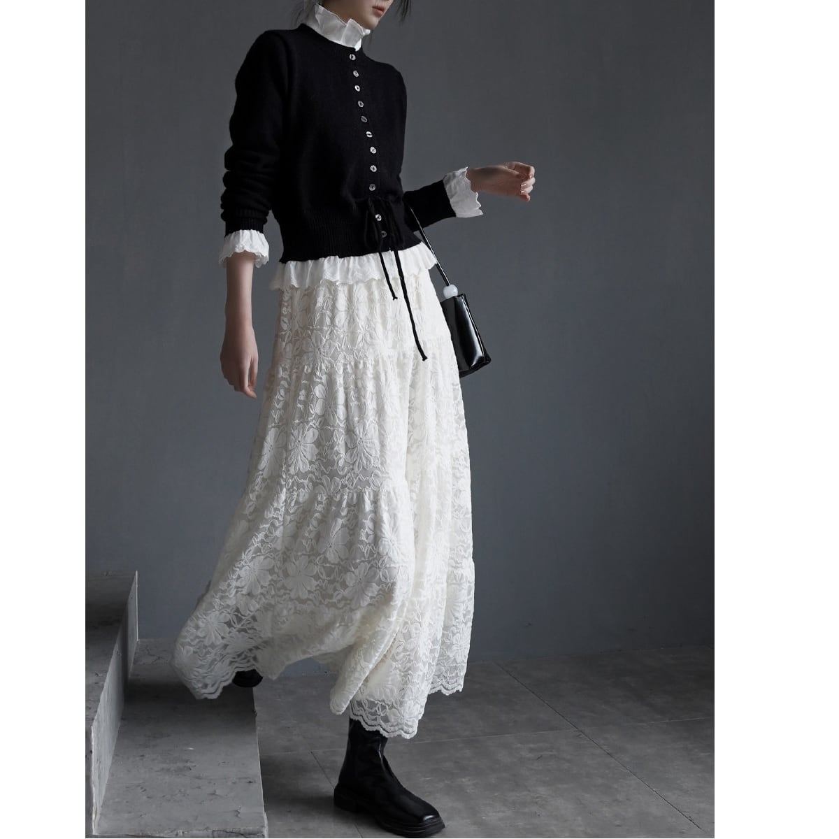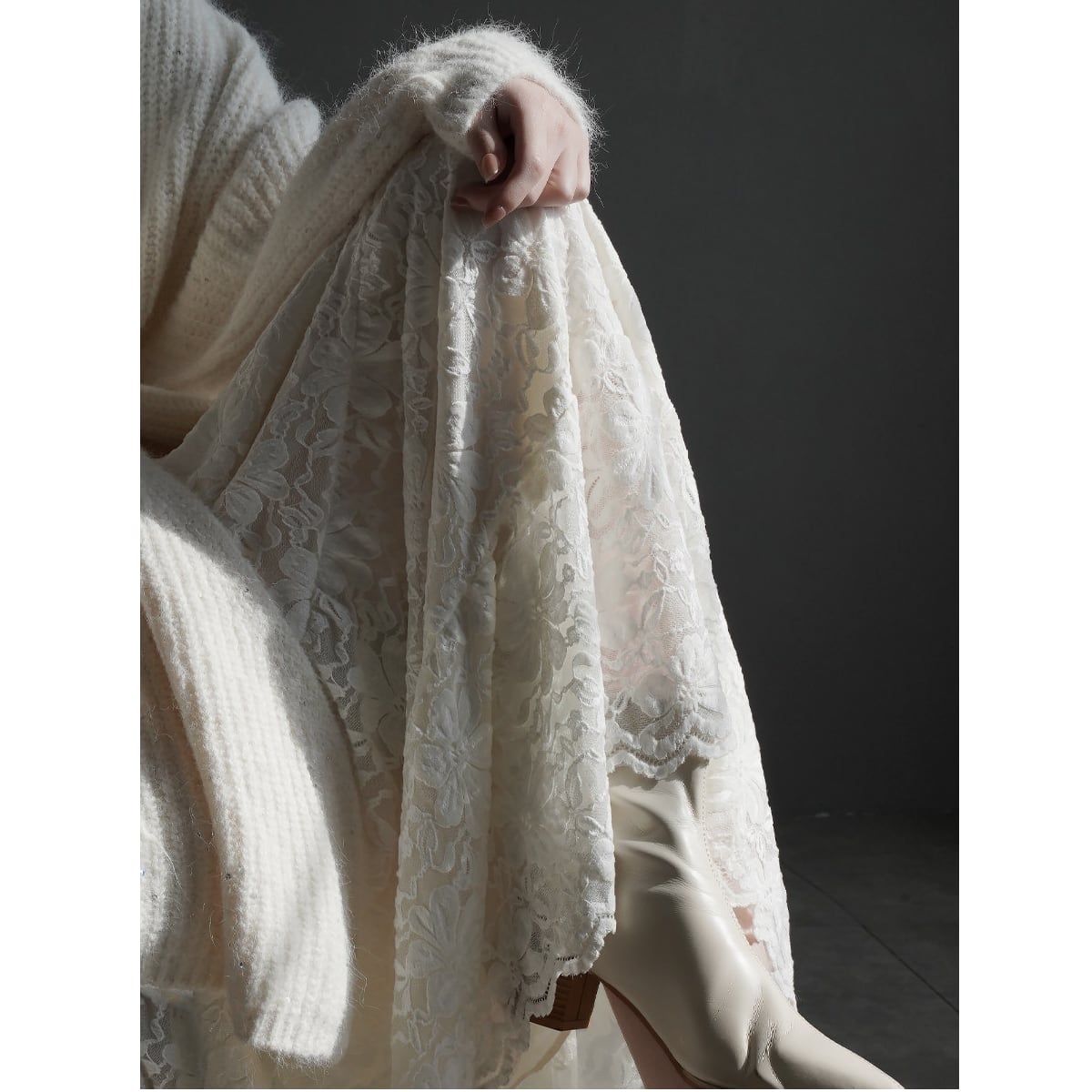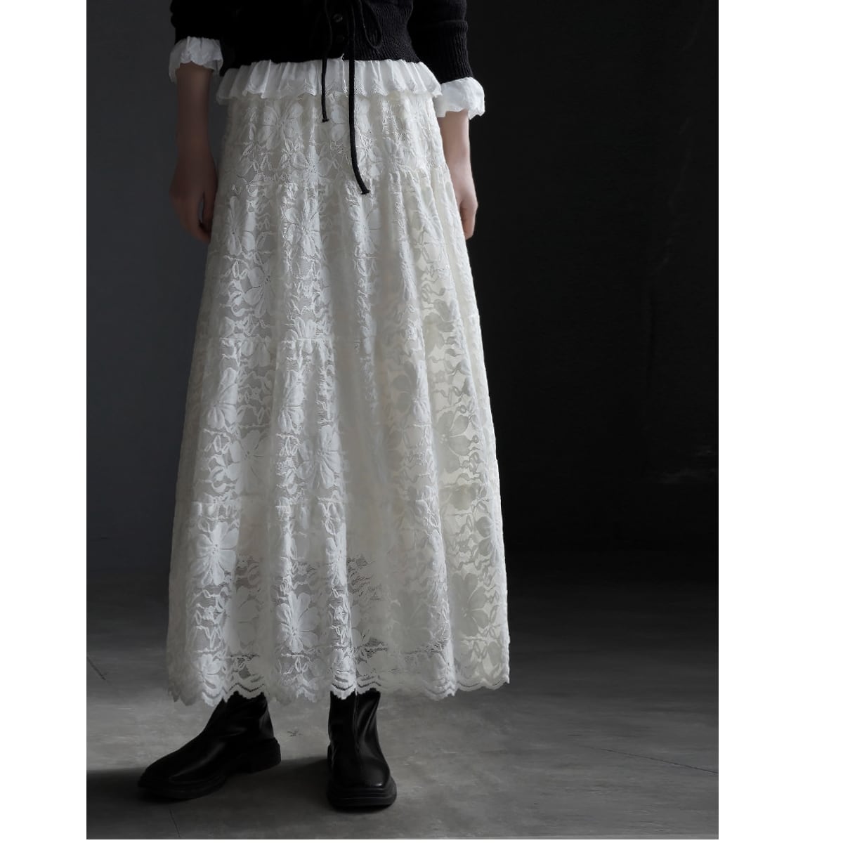 美しい刺繍レースを贅沢に使用したスカート。
