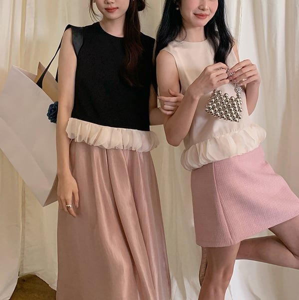 mesh panel chiffon sleeveless top<t3059>