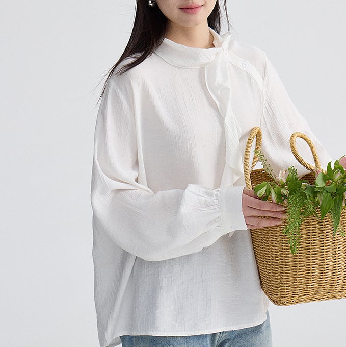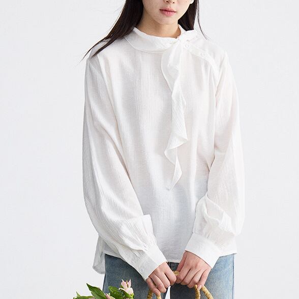 french ruffle tie blouse with side buttons(2color)<t3060>