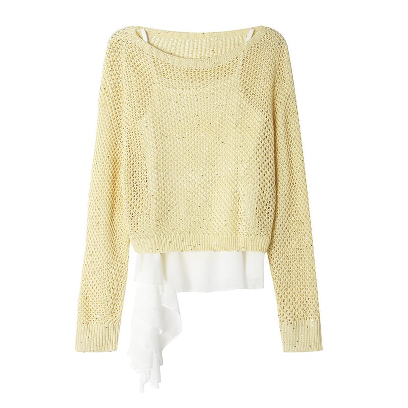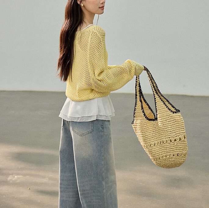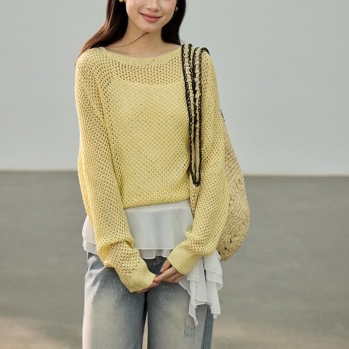 抜け感のあるオープンワークニットが今っぽい、カーディガン×キャミのセットアイテム。