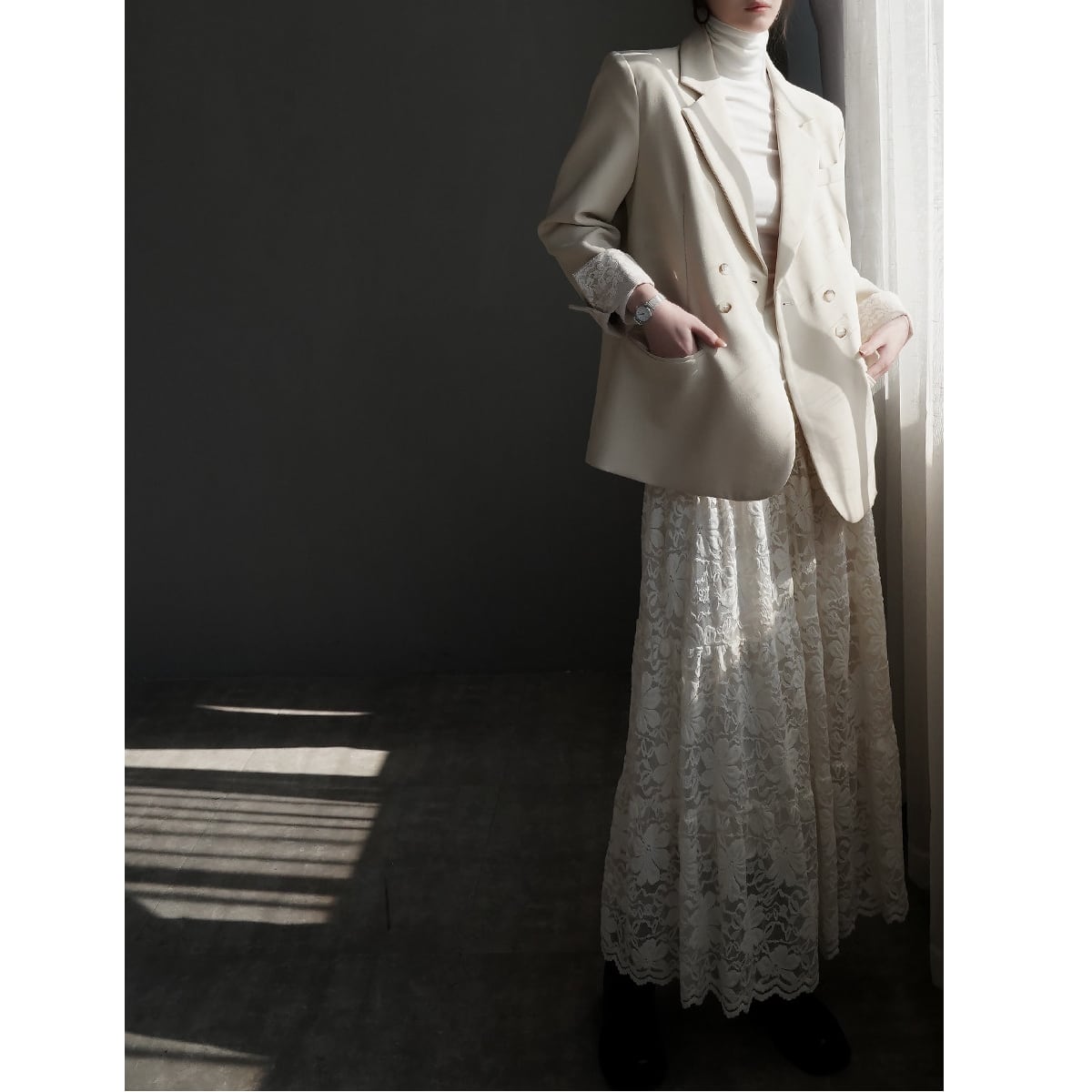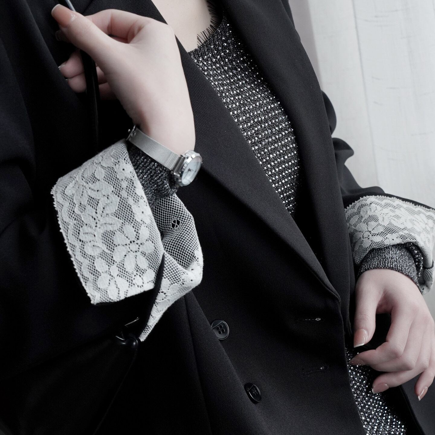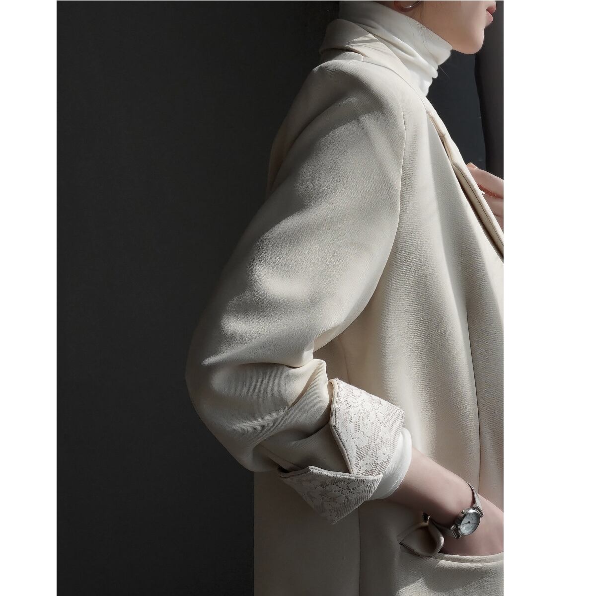 レースが目を惹く、ジャケット。 きちんと感のあるシルエットに繊細なレースをプラスすることで、上品さと女性らしさを両立した一着に仕上がっています。オンオフ問わず使えるデザイン。 羽織るだけでコーデを格上げしてくれる主役アイテムです。 ◇商品詳細 【サイズ(cm)】 S:着丈70cm/バスト94cm/肩幅38cm/袖丈56cm M:着丈71cm/バスト98cm/肩幅39cm/袖丈57cm L:着丈72cm/バスト102cm/肩幅40cm/袖丈58cm XL:着丈73cm/バスト106cm/肩幅41cm/袖丈59cm model info 身長168cm 着用サイズ Sサイズ ※採寸方法により1-3cmの誤差がある場合がございます 【カラー】 ベージュ/グレー/ブラック 【素材】 ポリエステル 折りたたんで発送されるため、折ジワがある場合があります。ご了承のほどよろしくお願いいたします。 【注意点】※誠に恐れ入りますが、必ずこちらを承諾の上でご注文ください。 ご購入の際は、こちらを承諾したものとさせて頂きます。 【お届けについて】 当ショップの商品は海外からの取り寄せ・発送となるため、ご入金から商品到着まで2週間~4週間のお届けになります。 ◼️注意事項 ・タイミングによっては 商品在庫切れにより 注文キャンセルとさせていただく恐れもございますので、予めご了承くださいませ。 ・こちらは輸入品となります。日本製とは検品基準が異なる為、 新品未使用品でもごくわずかな汚れや傷がある場合もございます。 ・商品の色味は、お手持ちのスマートフォンの画面によって実物と若干異なる場合がございます。 ・イメージ違いやサイズ交換等、お客さまご都合による交換、返品は対応出来かねます。 【お支払い方法】 以下の各種お支払い方法をお選びいただけます。 ・BASEかんたん決済 ・クレジットカード決済(VISA/Master/JCB/AMERICAN EXPRESS) ・キャリア決済 ・銀行振込 ・コンビニ決済・Pay-easy ご購入前にこちらをお読みください → https://www.amor-alma.shop/about ———————————— 管理番号:j3077 ———————————