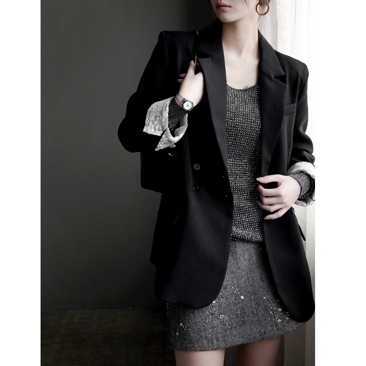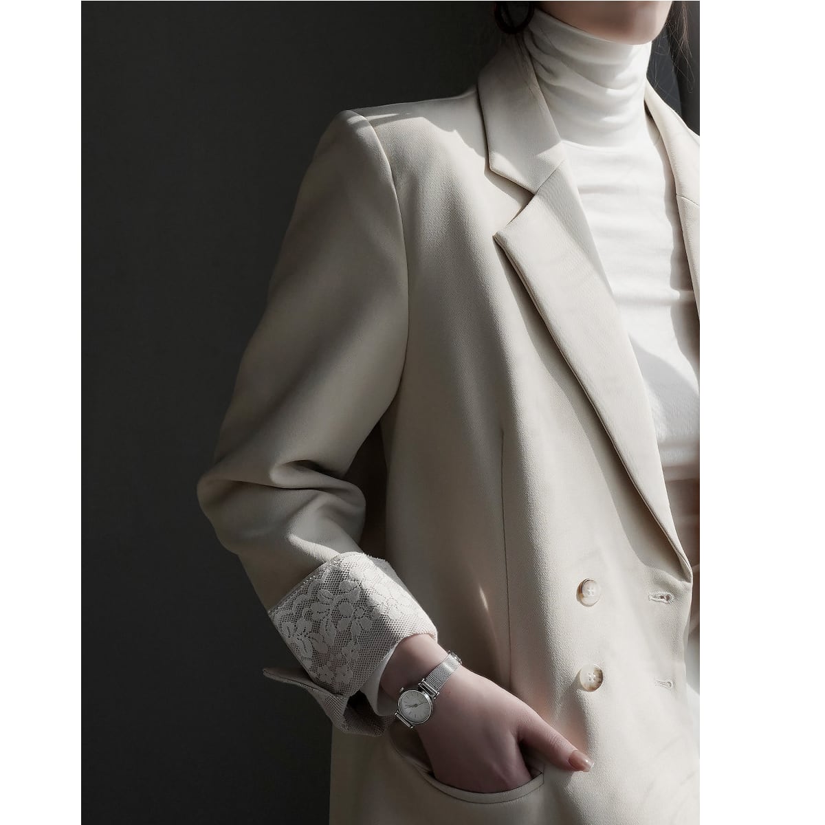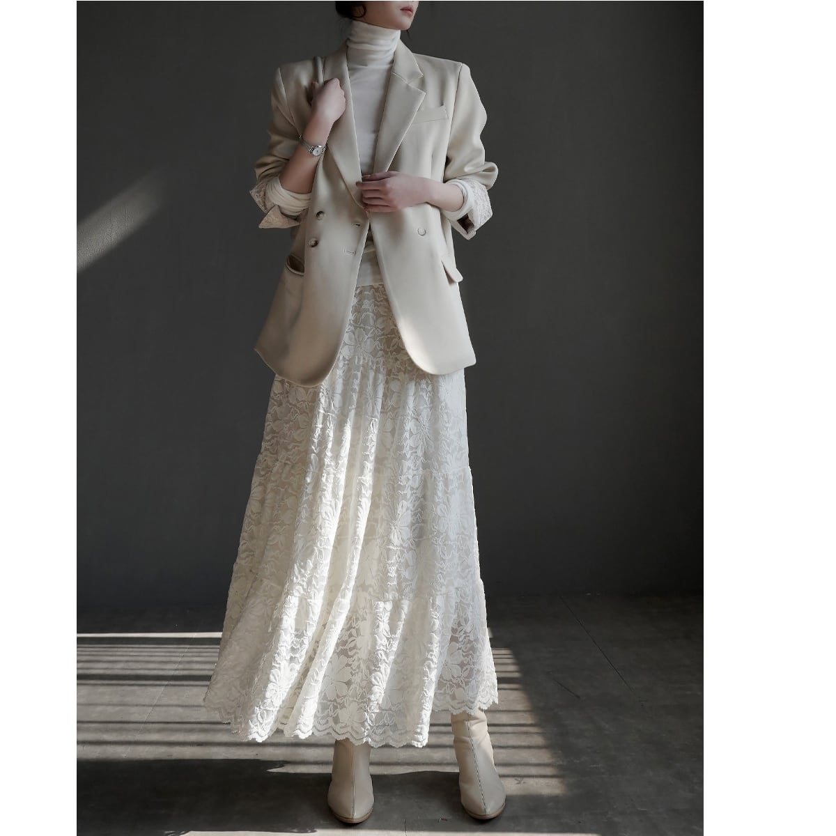 レースが目を惹く、ジャケット。 きちんと感のあるシルエットに繊細なレースをプラスすることで、上品さと女性らしさを両立した一着に仕上がっています。オンオフ問わず使えるデザイン。 羽織るだけでコーデを格上げしてくれる主役アイテムです。 ◇商品詳細 【サイズ(cm)】 S:着丈70cm/バスト94cm/肩幅38cm/袖丈56cm M:着丈71cm/バスト98cm/肩幅39cm/袖丈57cm L:着丈72cm/バスト102cm/肩幅40cm/袖丈58cm XL:着丈73cm/バスト106cm/肩幅41cm/袖丈59cm model info 身長168cm 着用サイズ Sサイズ ※採寸方法により1-3cmの誤差がある場合がございます 【カラー】 ベージュ/グレー/ブラック 【素材】 ポリエステル 折りたたんで発送されるため、折ジワがある場合があります。ご了承のほどよろしくお願いいたします。 【注意点】※誠に恐れ入りますが、必ずこちらを承諾の上でご注文ください。 ご購入の際は、こちらを承諾したものとさせて頂きます。 【お届けについて】 当ショップの商品は海外からの取り寄せ・発送となるため、ご入金から商品到着まで2週間~4週間のお届けになります。 ◼️注意事項 ・タイミングによっては 商品在庫切れにより 注文キャンセルとさせていただく恐れもございますので、予めご了承くださいませ。 ・こちらは輸入品となります。日本製とは検品基準が異なる為、 新品未使用品でもごくわずかな汚れや傷がある場合もございます。 ・商品の色味は、お手持ちのスマートフォンの画面によって実物と若干異なる場合がございます。 ・イメージ違いやサイズ交換等、お客さまご都合による交換、返品は対応出来かねます。 【お支払い方法】 以下の各種お支払い方法をお選びいただけます。 ・BASEかんたん決済 ・クレジットカード決済(VISA/Master/JCB/AMERICAN EXPRESS) ・キャリア決済 ・銀行振込 ・コンビニ決済・Pay-easy ご購入前にこちらをお読みください → https://www.amor-alma.shop/about ———————————— 管理番号:j3077 ———————————