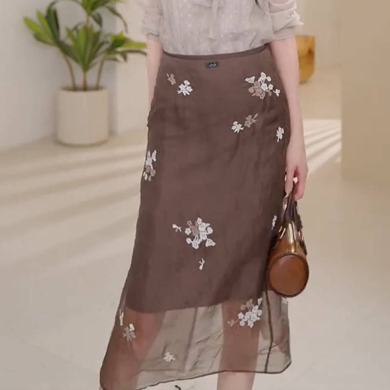 華やかなフローラル刺繍が魅力のペンシルスカート。