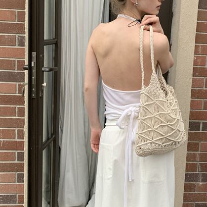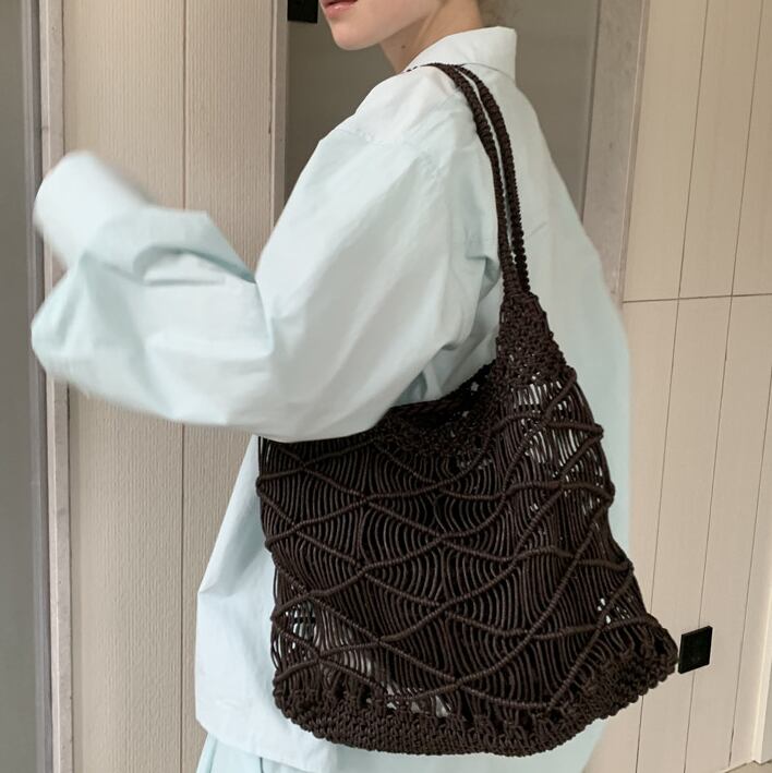 handmade woven cotton shoulder bag(2color)<b3084>