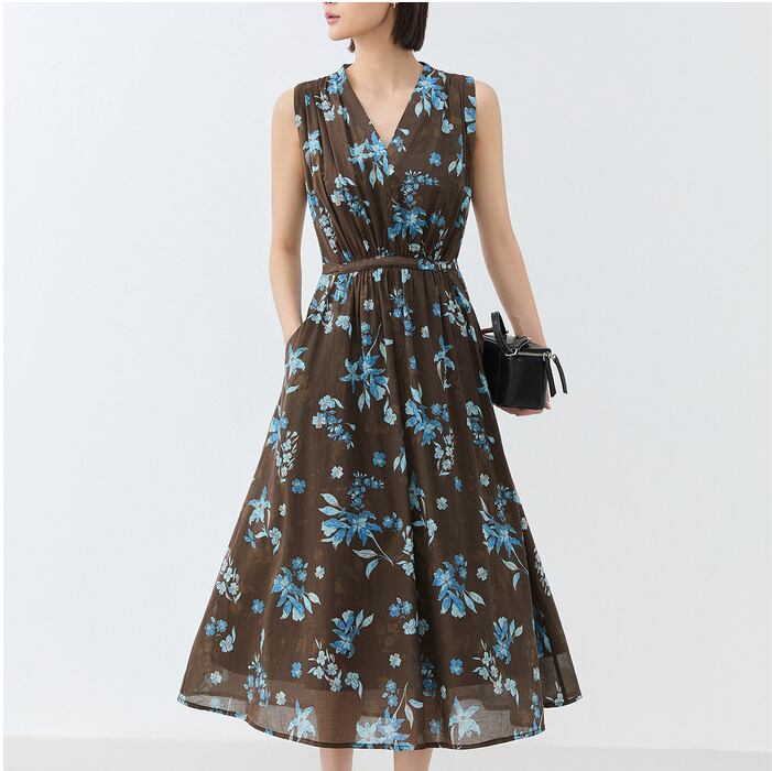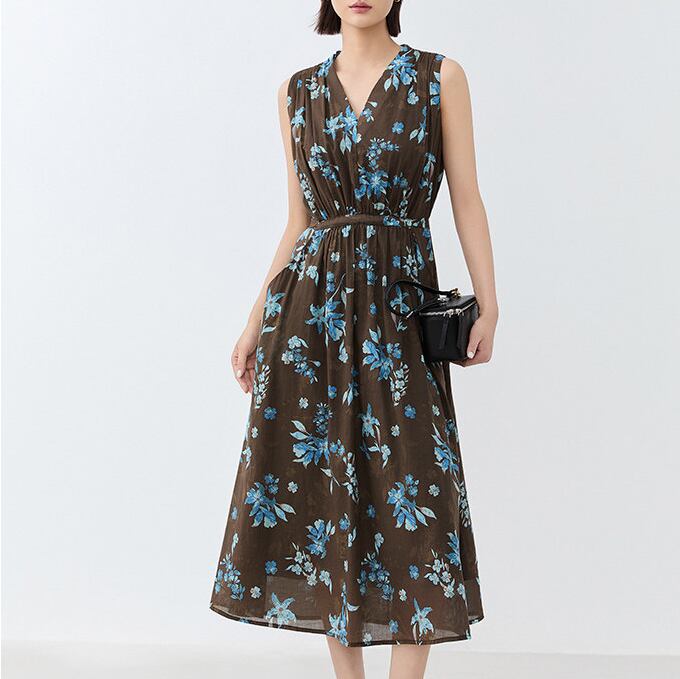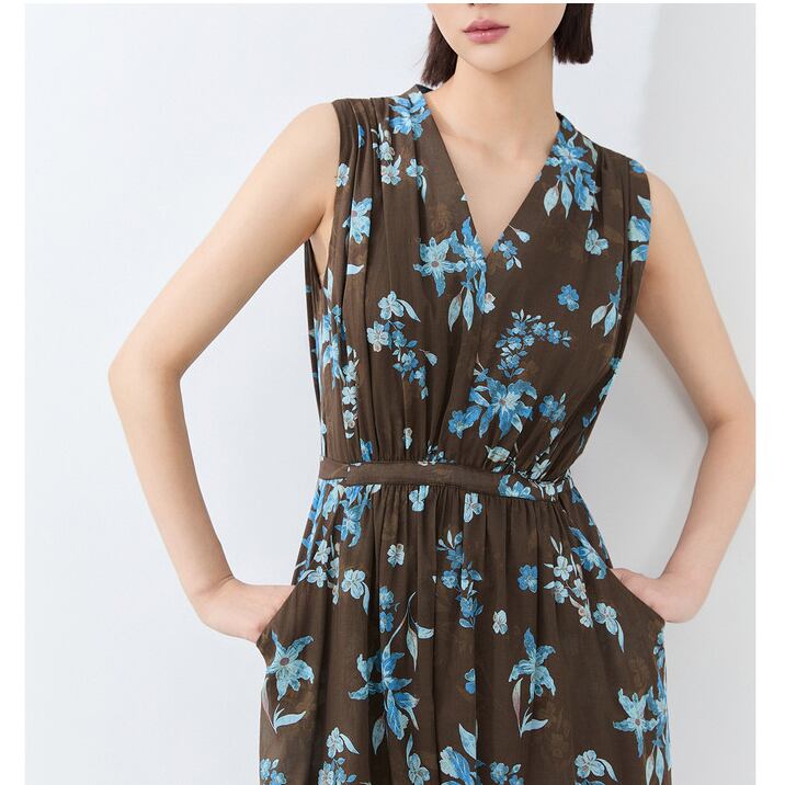 floral print cotton sleeveless one-piece<d3096>