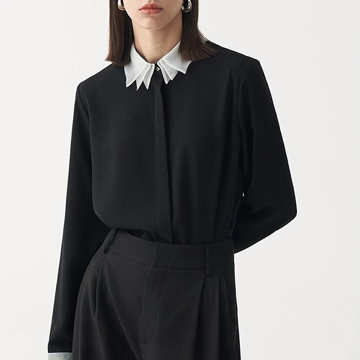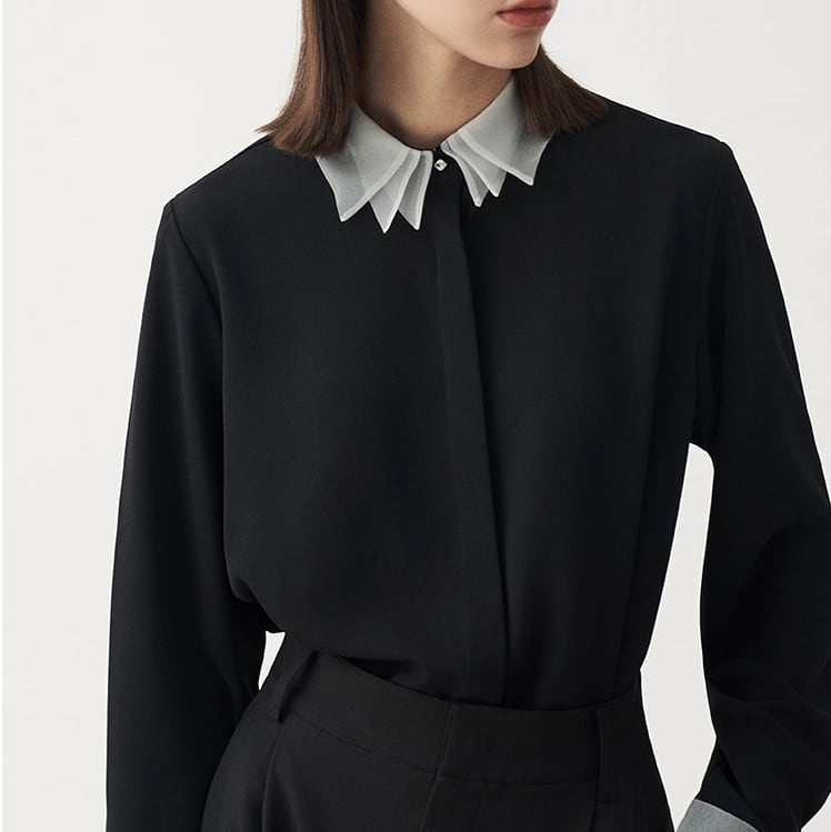 やわらかな気品をまとった、フレンチムード漂うレイヤードカラーブラウス。