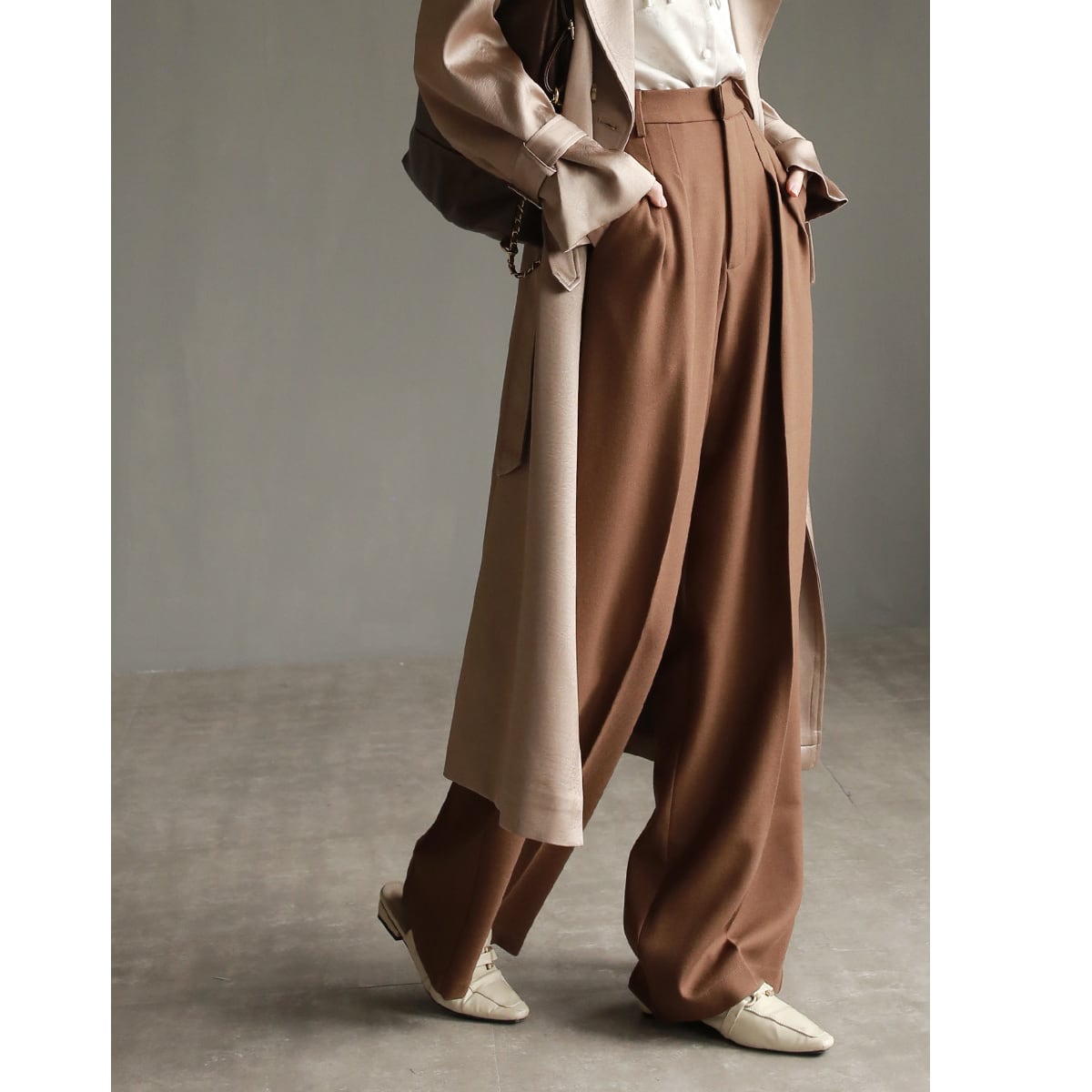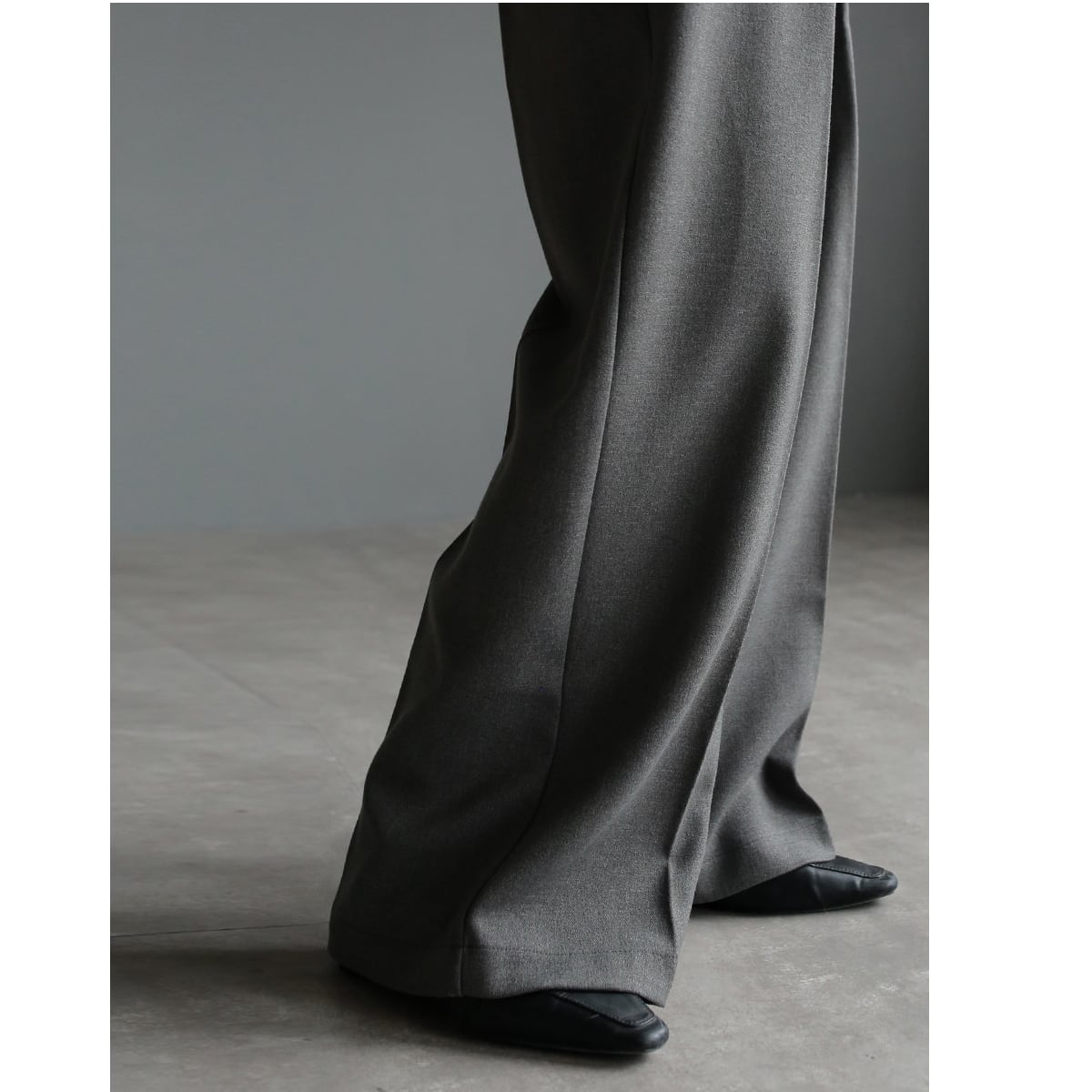 無駄のないストレートラインと程よいワイド感が、リラックスした履き心地と上品さを両立。