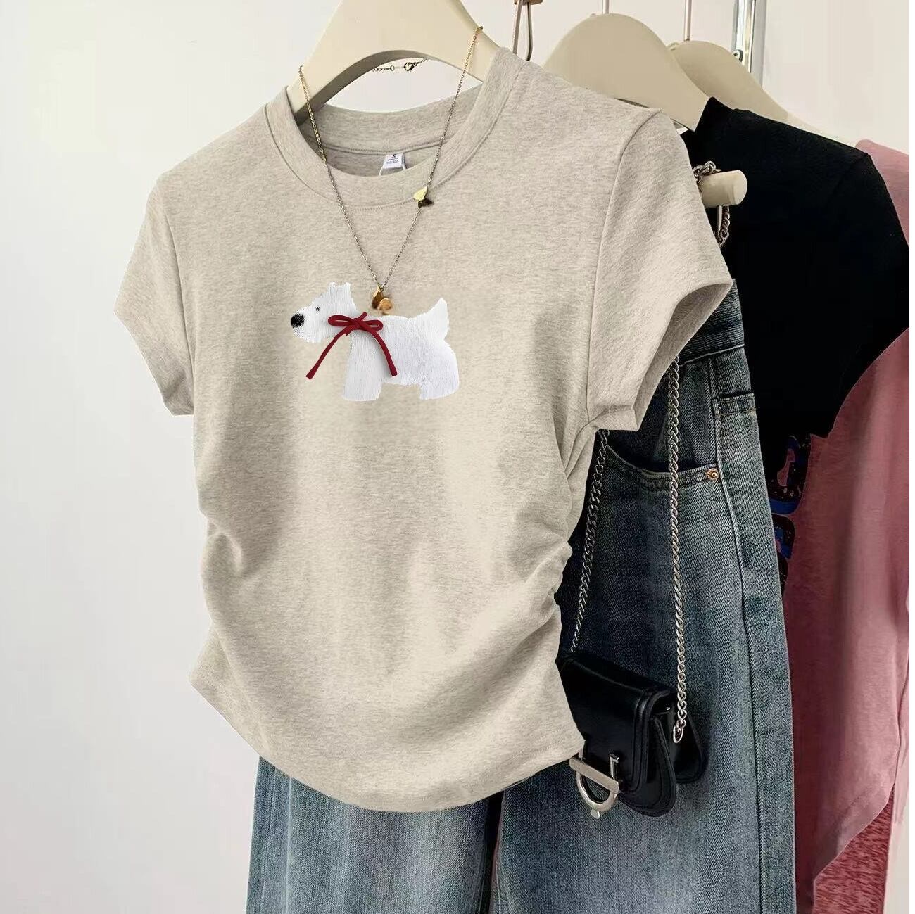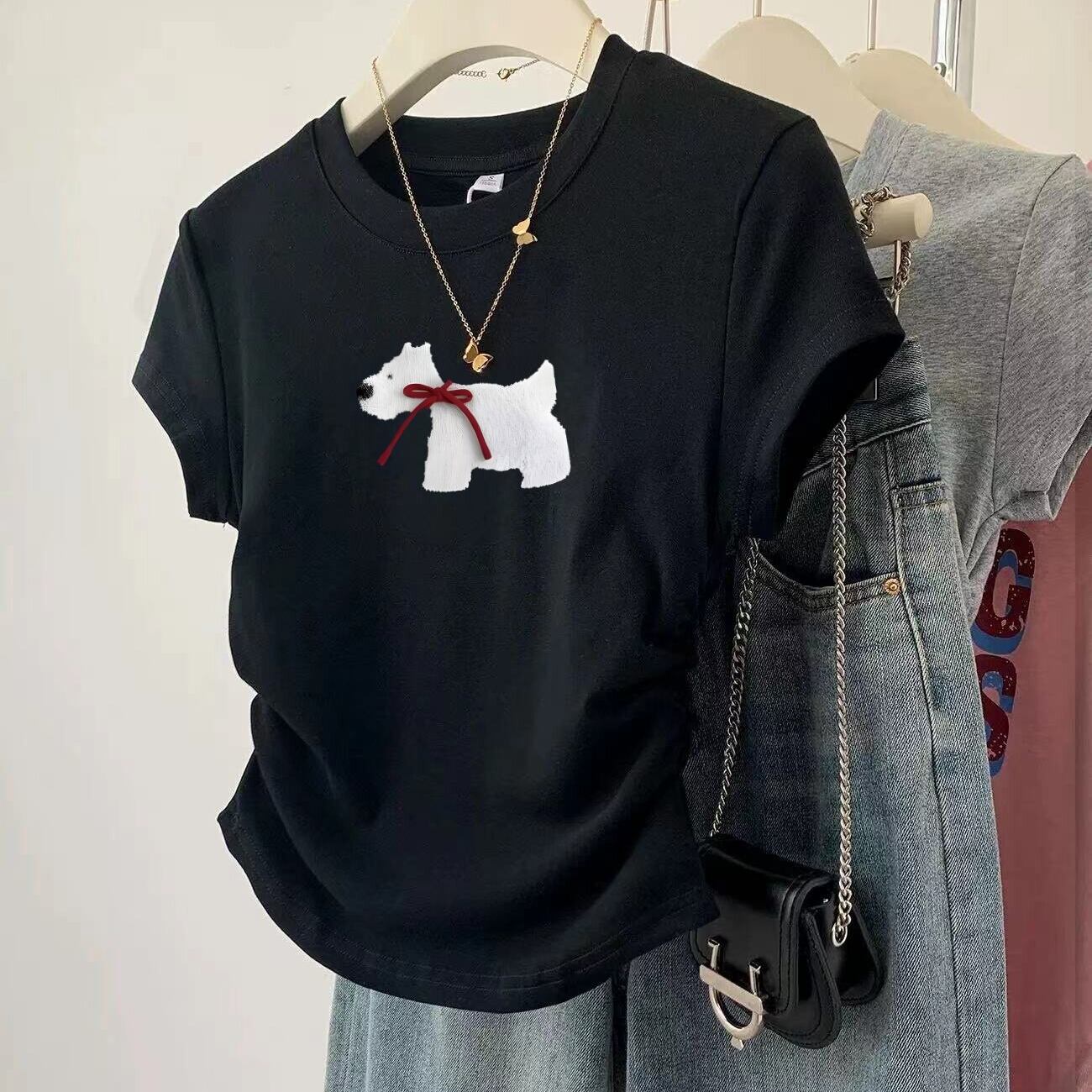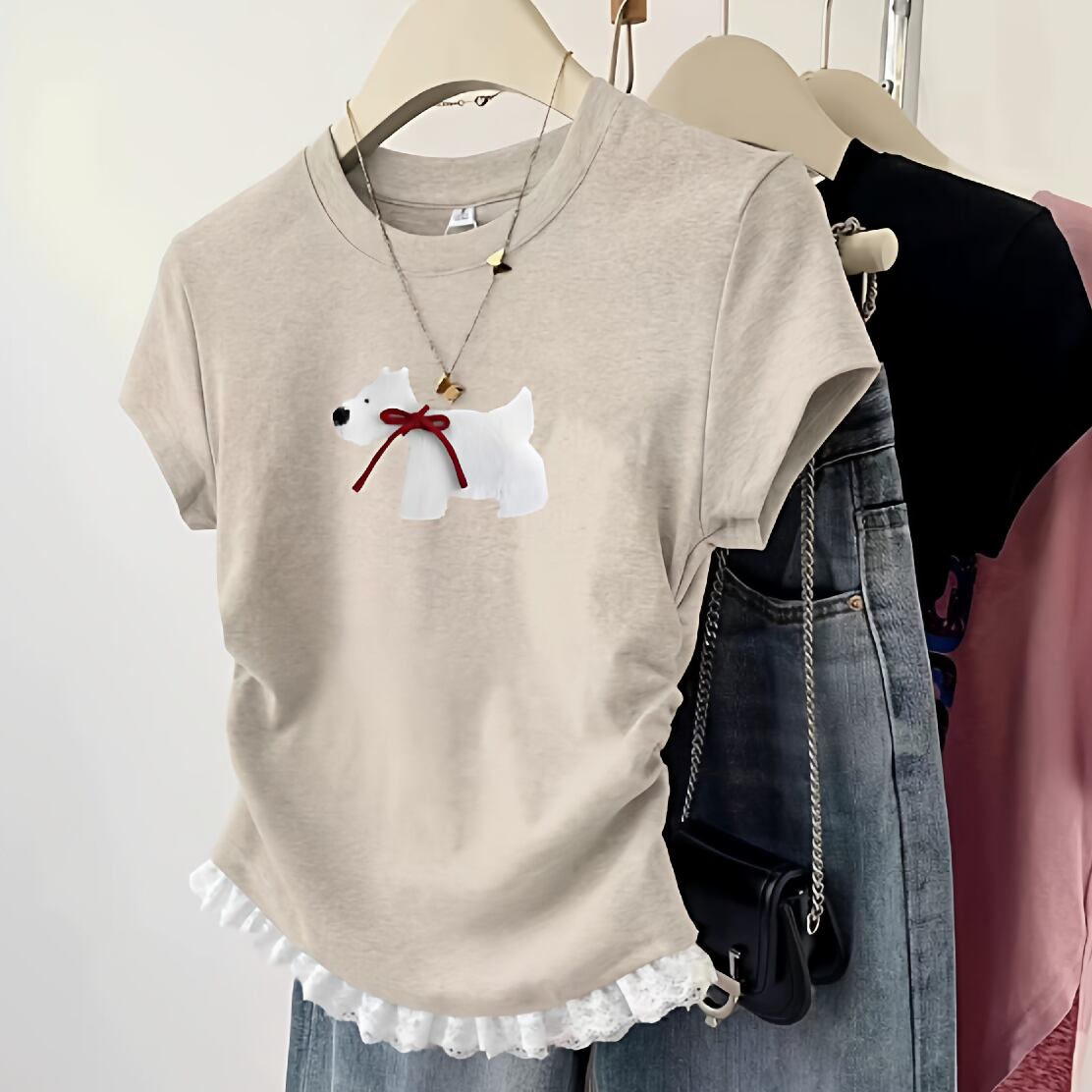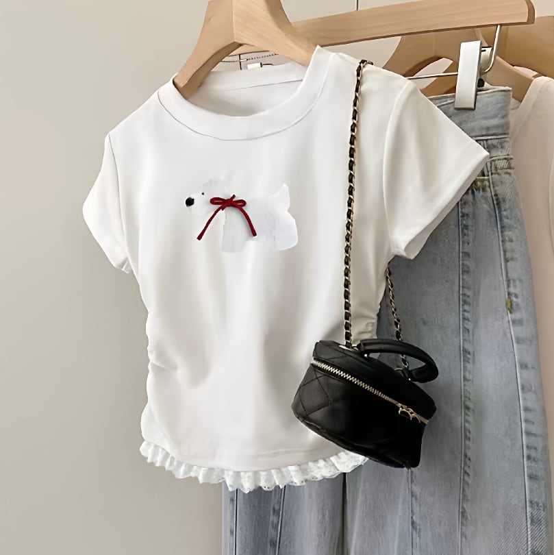 やわらかな雰囲気の子犬モチーフが魅力のカジュアルTシャツ。 気負わず着られるシンプルなデザインで、日常にさりげない癒しをプラス。 リラックスしたい日にも心地よく寄り添う一着です。 ※レース付きタイプとレースなしタイプからお選びいただけます ◇商品詳細 【サイズ(cm)】 S 着丈:49cm / バスト:80cm / 肩幅:37cm / 袖丈:10cm M 着丈:50cm / バスト:84cm / 肩幅:38cm / 袖丈:11cm L 着丈:51cm / バスト:88cm / 肩幅:39cm / 袖丈:12cm XL 着丈:52cm / バスト:92cm / 肩幅:40cm / 袖丈:13cm ※採寸方法により1-3cmの誤差がある場合がございます 【カラー】 グレー/ブラック/ベージュ/ホワイト/ワインレッド 【素材】 ポリエステル 折りたたんで発送されるため、折ジワがある場合があります。ご了承のほどよろしくお願いいたします。 【お届けについて】 当ショップの商品は海外からの取り寄せ・発送となるため、ご入金から商品到着まで2週間~4週間のお届けになります。 ◼️注意事項 ・タイミングによっては 商品在庫切れにより 注文キャンセルとさせていただく恐れもございますので、予めご了承くださいませ。 ・こちらは輸入品となります。日本製とは検品基準が異なる為、 新品未使用品でもごくわずかな汚れや傷がある場合もございます。 ・商品の色味は、お手持ちのスマートフォンの画面によって実物と若干異なる場合がございます。 ・イメージ違いやサイズ交換等、お客さまご都合による交換、返品は対応出来かねます。 【お支払い方法】 以下の各種お支払い方法をお選びいただけます。 ・BASEかんたん決済 ・クレジットカード決済(VISA/Master/JCB/AMERICAN EXPRESS) ・キャリア決済 ・銀行振込 ・コンビニ決済・Pay-easy ———————————— ご購入前にこちらをお読みください →https://www.amor-alma.shop/about ———————————— 管理番号:t3114 ———————————— ・気になるトップスまだまだあります!→https://www.amor-alma.shop/categories/2952433 ・ワクワクする春夏商品はこちらです→https://www.amor-alma.shop/categories/3098814 ・トップページはこちら♡→https://www.amor-alma.shop/