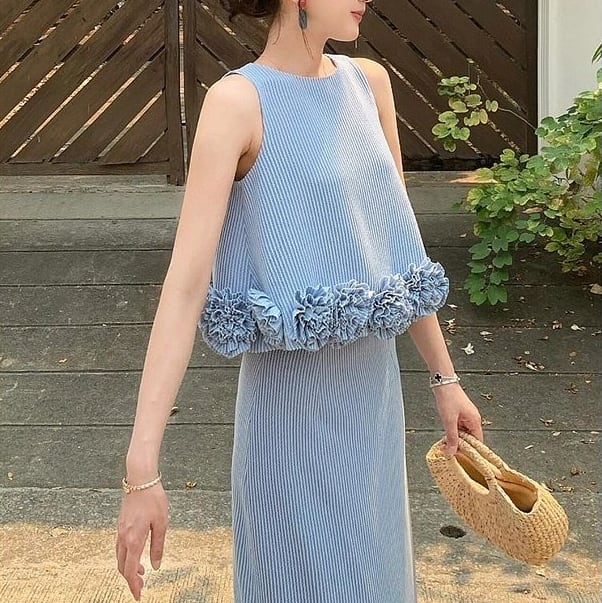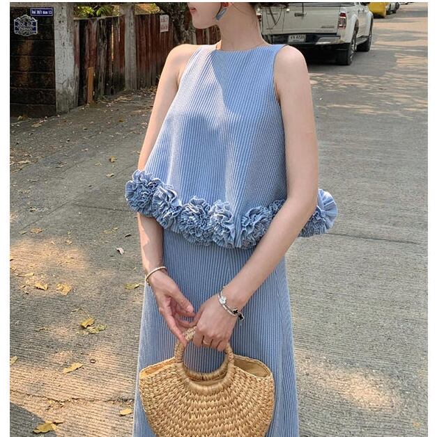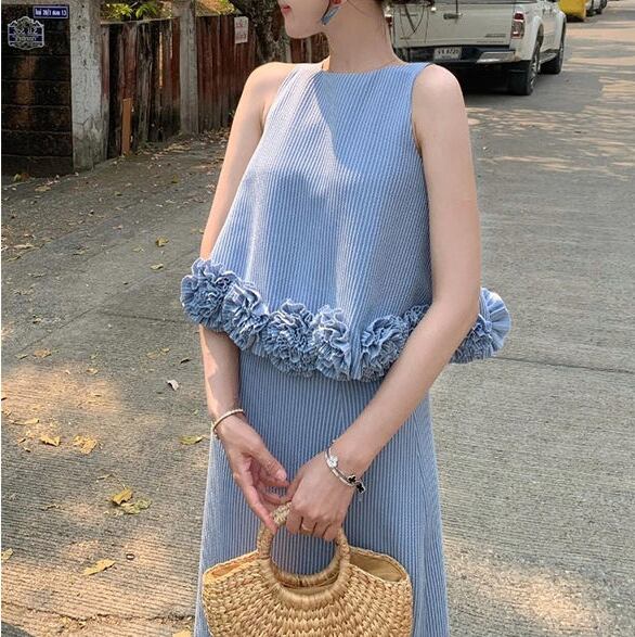 blue striped dress and jacket set<ts3121>