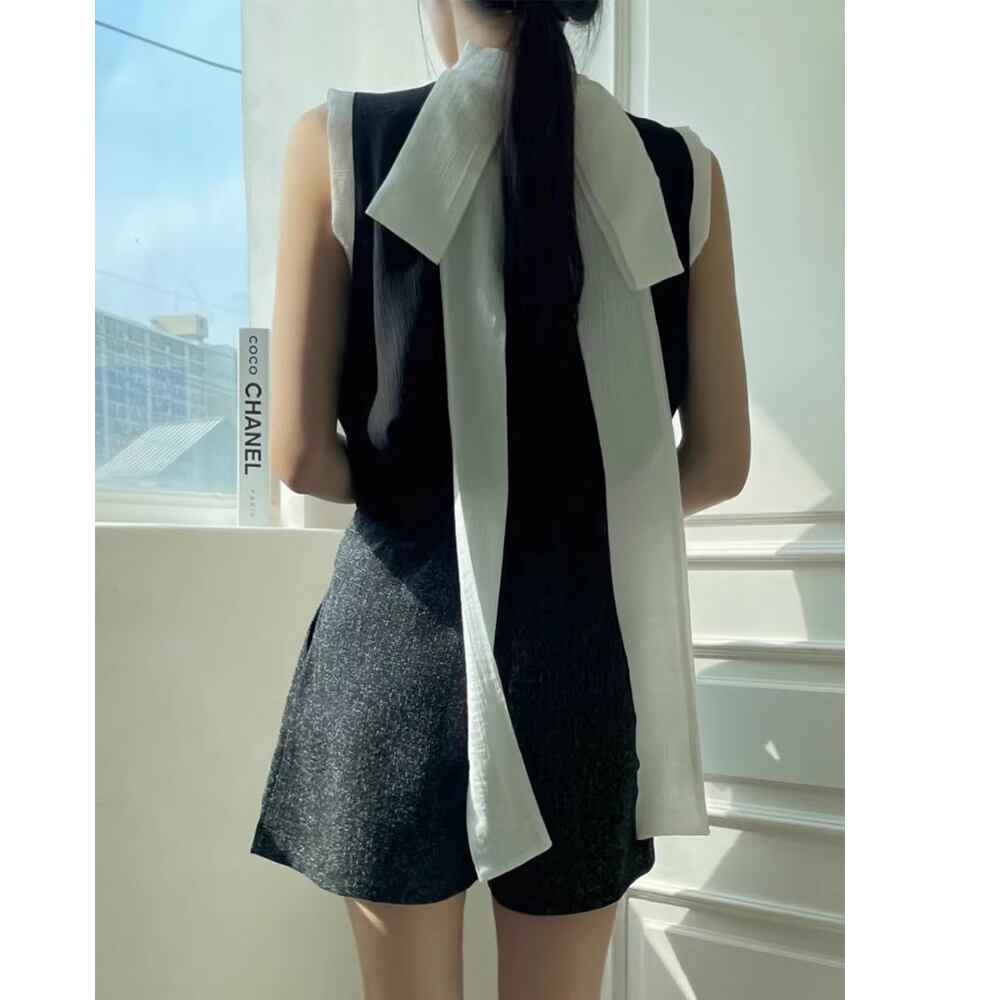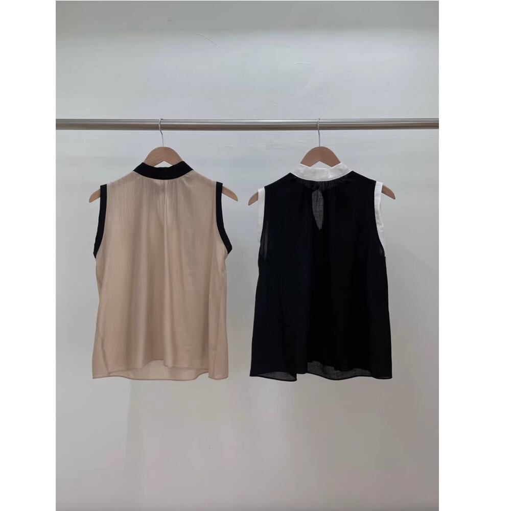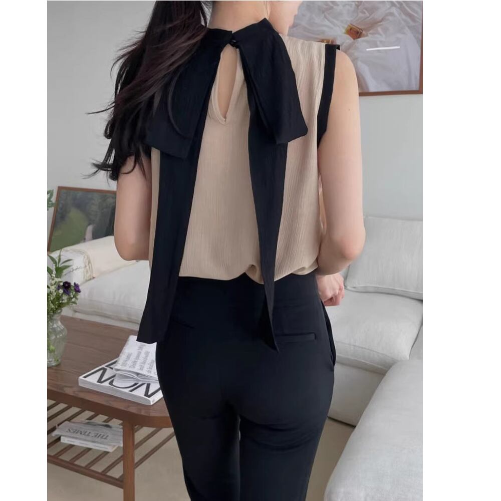contrast color bow tie sleeveless blouse(2color)<t3122>