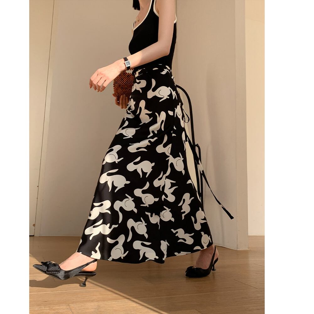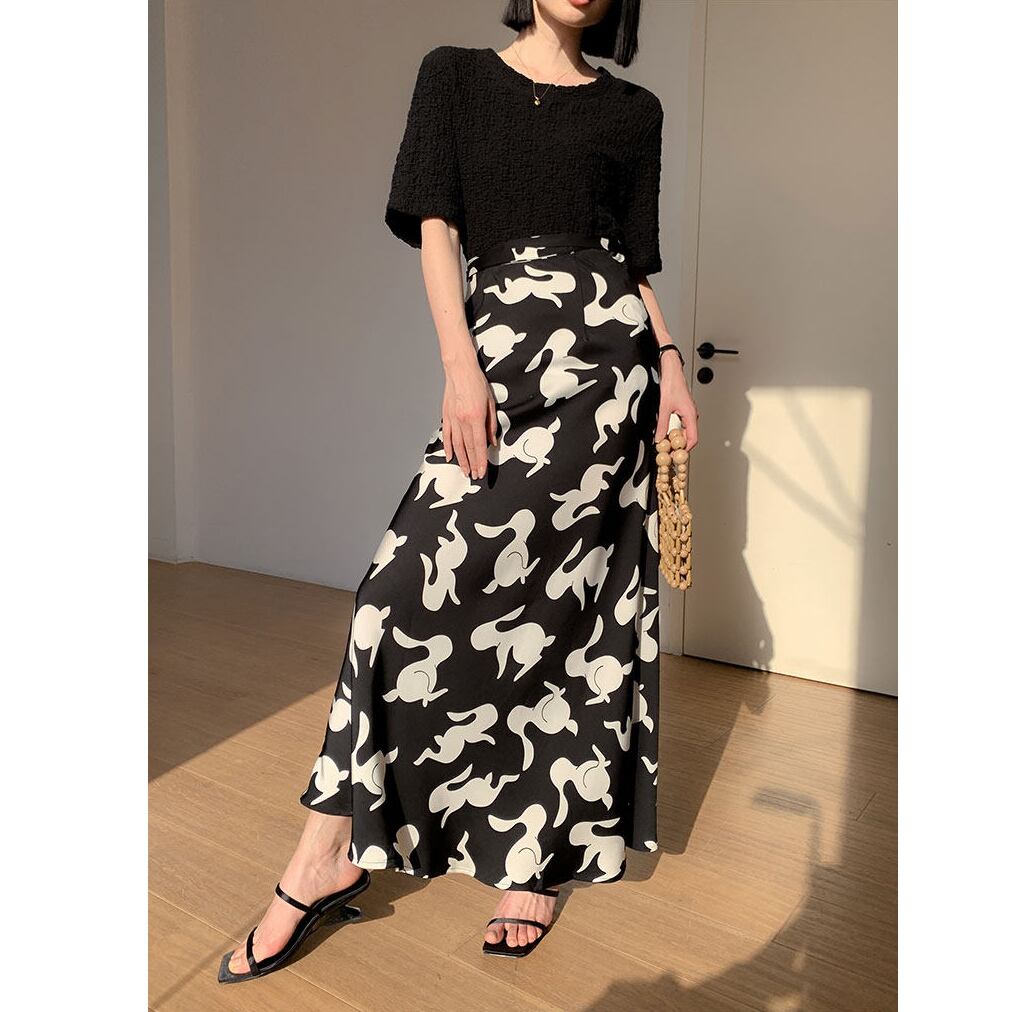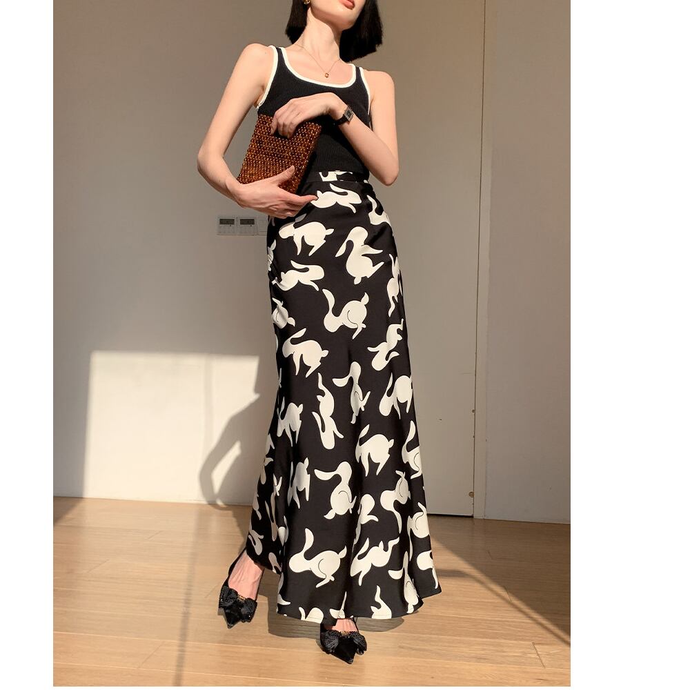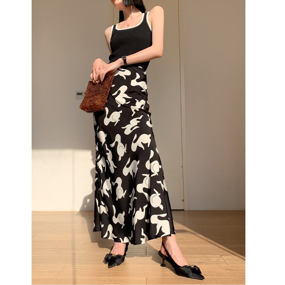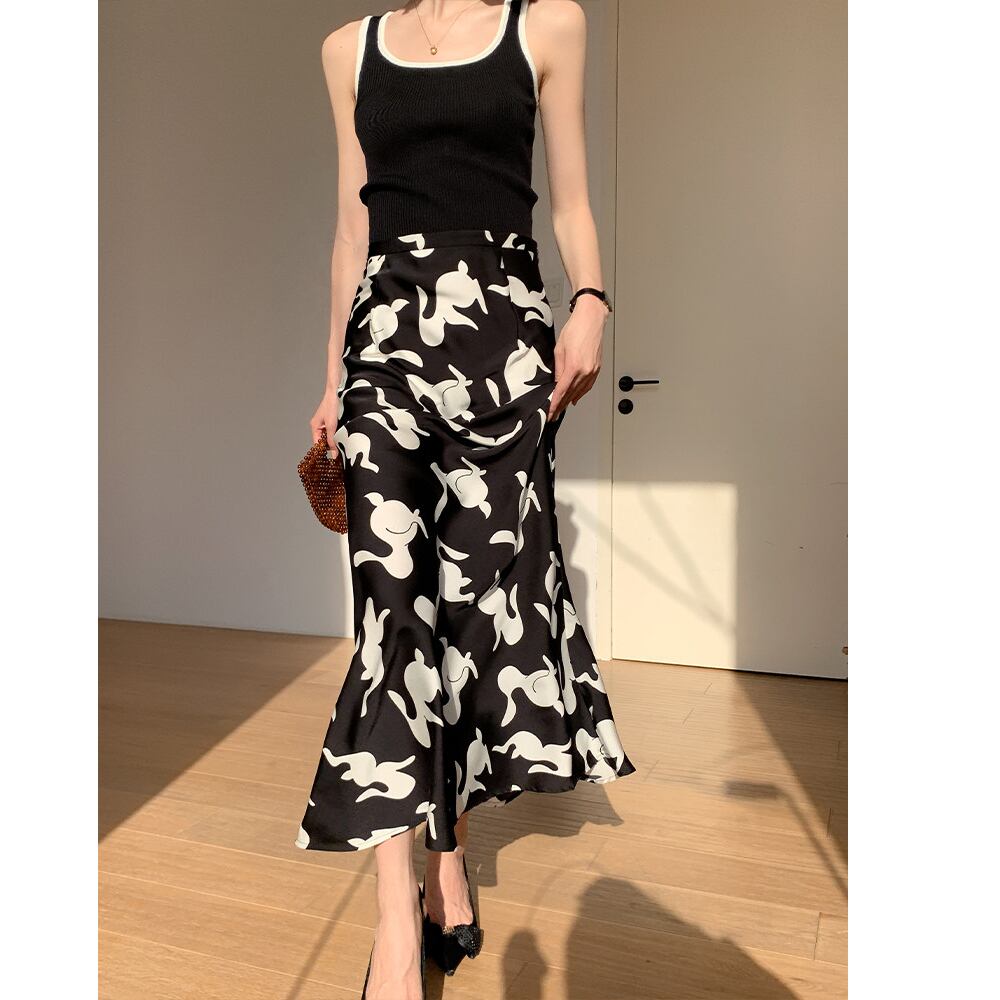 printed high waist mermaid midi skirt<sk3129>