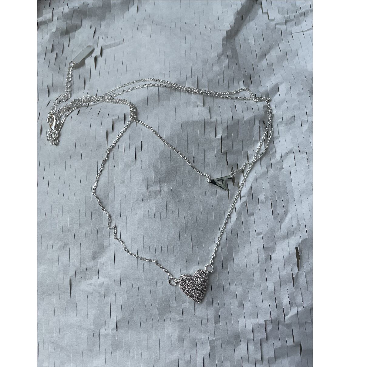 double layer letter and heart necklace minimal style<a3131>