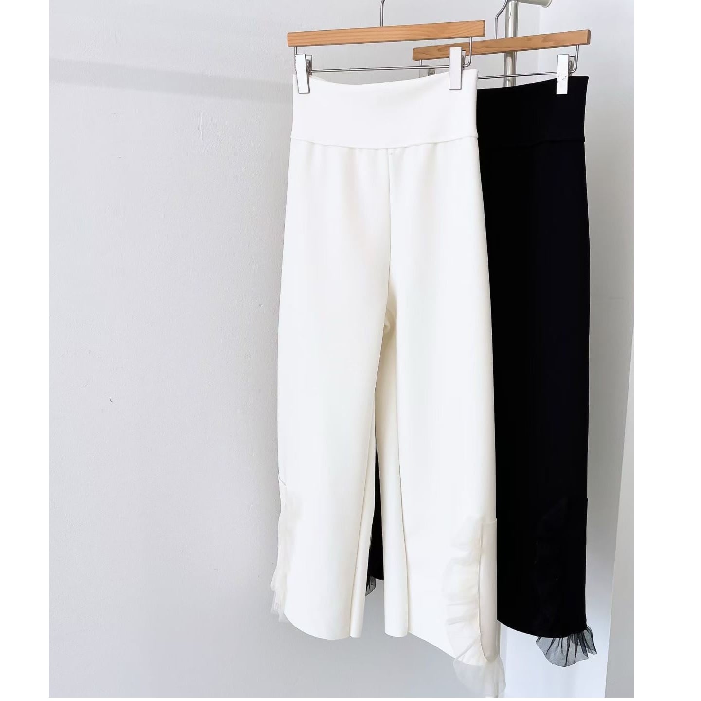 lace patchwork elastic waist casual pants(2color)<p3145>