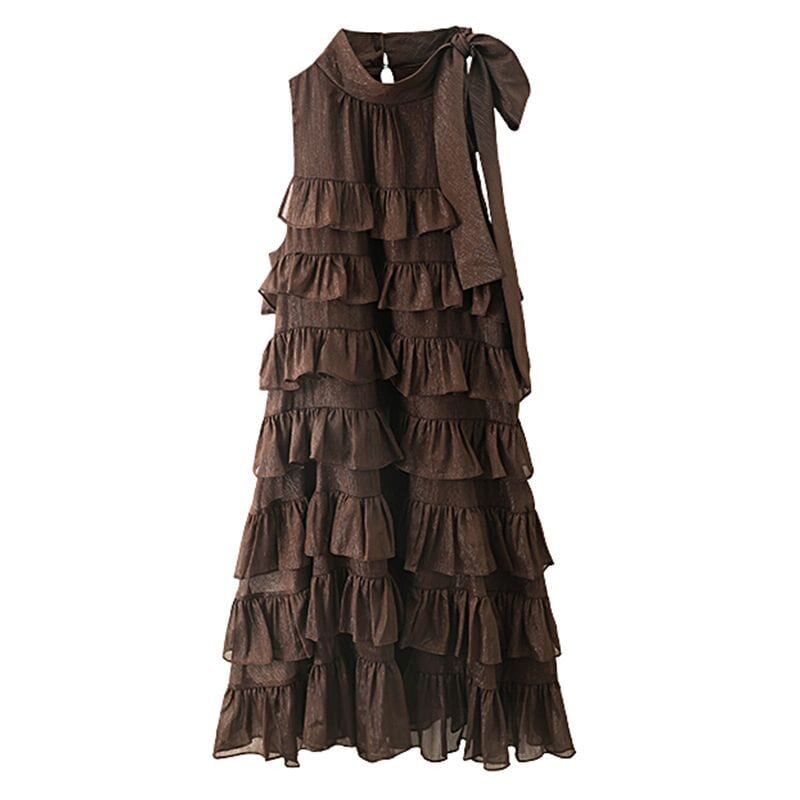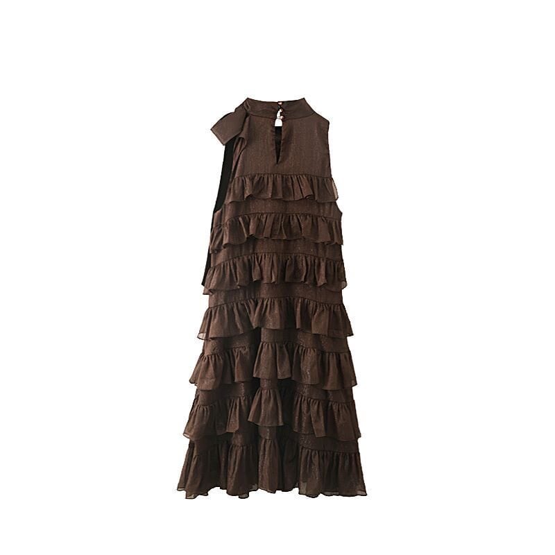 french lace up sleeveless tiered dress<d3147>