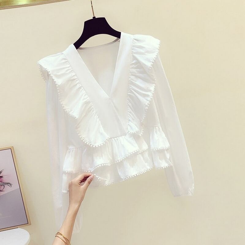V-neck frill blouse<t248>