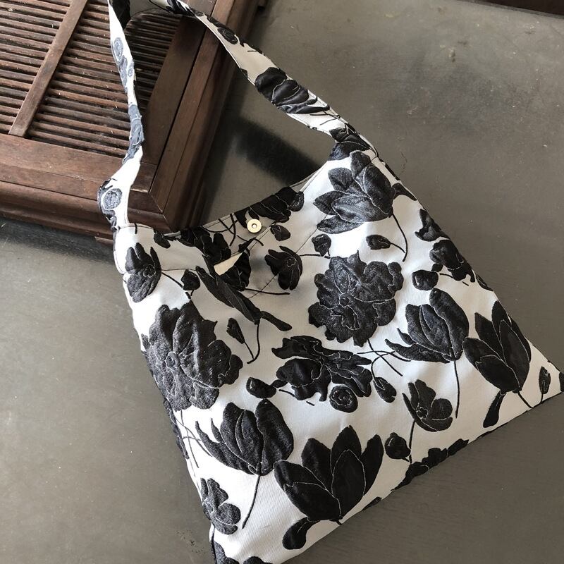 black botanical bag
