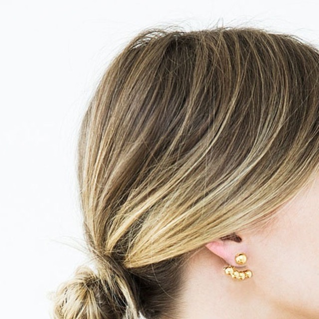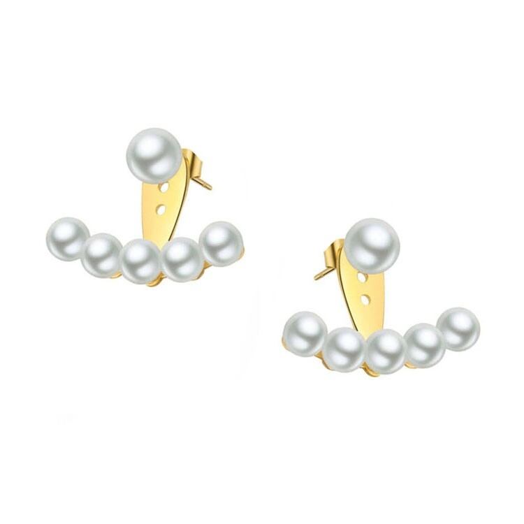 耳に沿って、パールが輝きます。品よく個性的ピアス。