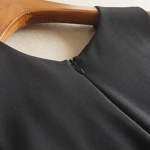 落ちついたブラックカラーで仕上げたジャンプスーツ。きれいめにもカジュアルにもマッチするアイテムです。サイドリボンでアクセントをプラスしました。