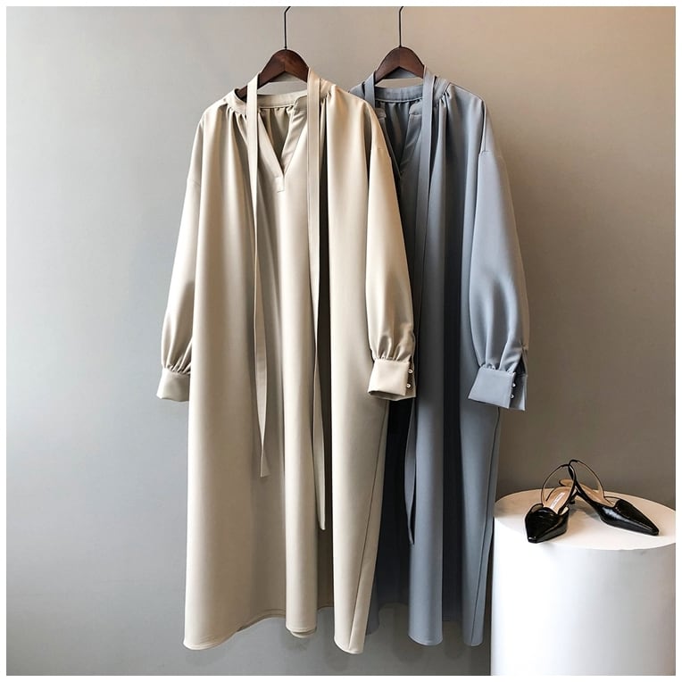 ブイに開き、袖の部分が特徴的なシャツワンピース。