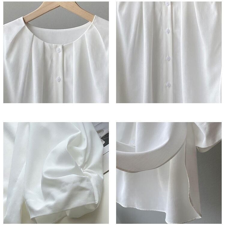 ふんわりとしたスリーブデザインと軽やかな風合いが魅力的なデザインブラウス。