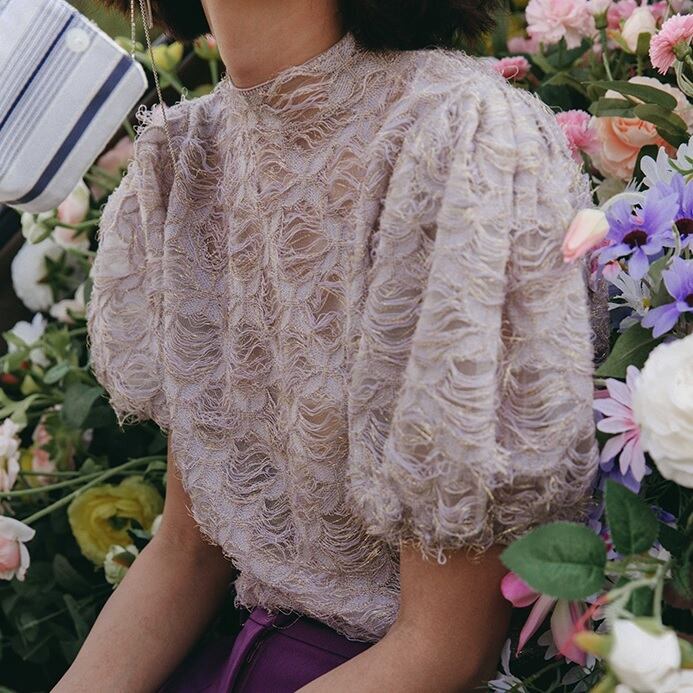 軽やかなマテリアルとふんわりとしたスリーブデザインがポイントです。