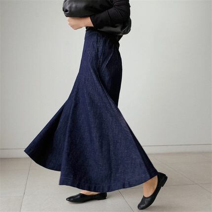ワイドシルエットで使い勝手の良さが魅力のパンツ。デニム生地でカジュアルにもきまります。